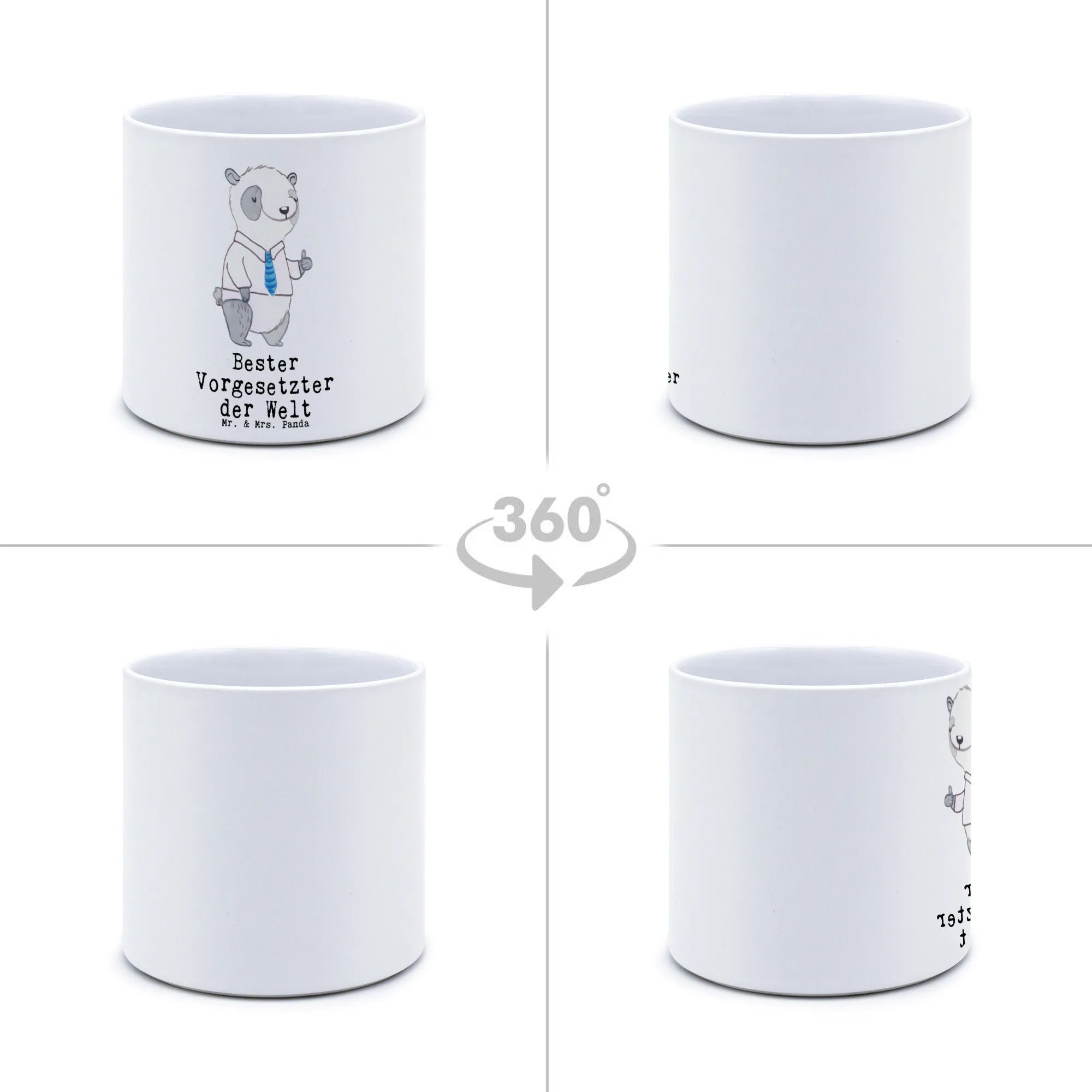 Der XL Blumentopf "Bester Vorgesetzter der Welt" von Mr. & Mrs. Panda ist das perfekte Geschenk für alle, die ihren Vorgesetzten wertschätzen. Mit einem charmanten Panda-Motiv, der in einem Hemd und mit Krawatte den Daumen nach oben hält, bringt dieser Blumentopf Freude in jedes Büro oder Homeoffice.