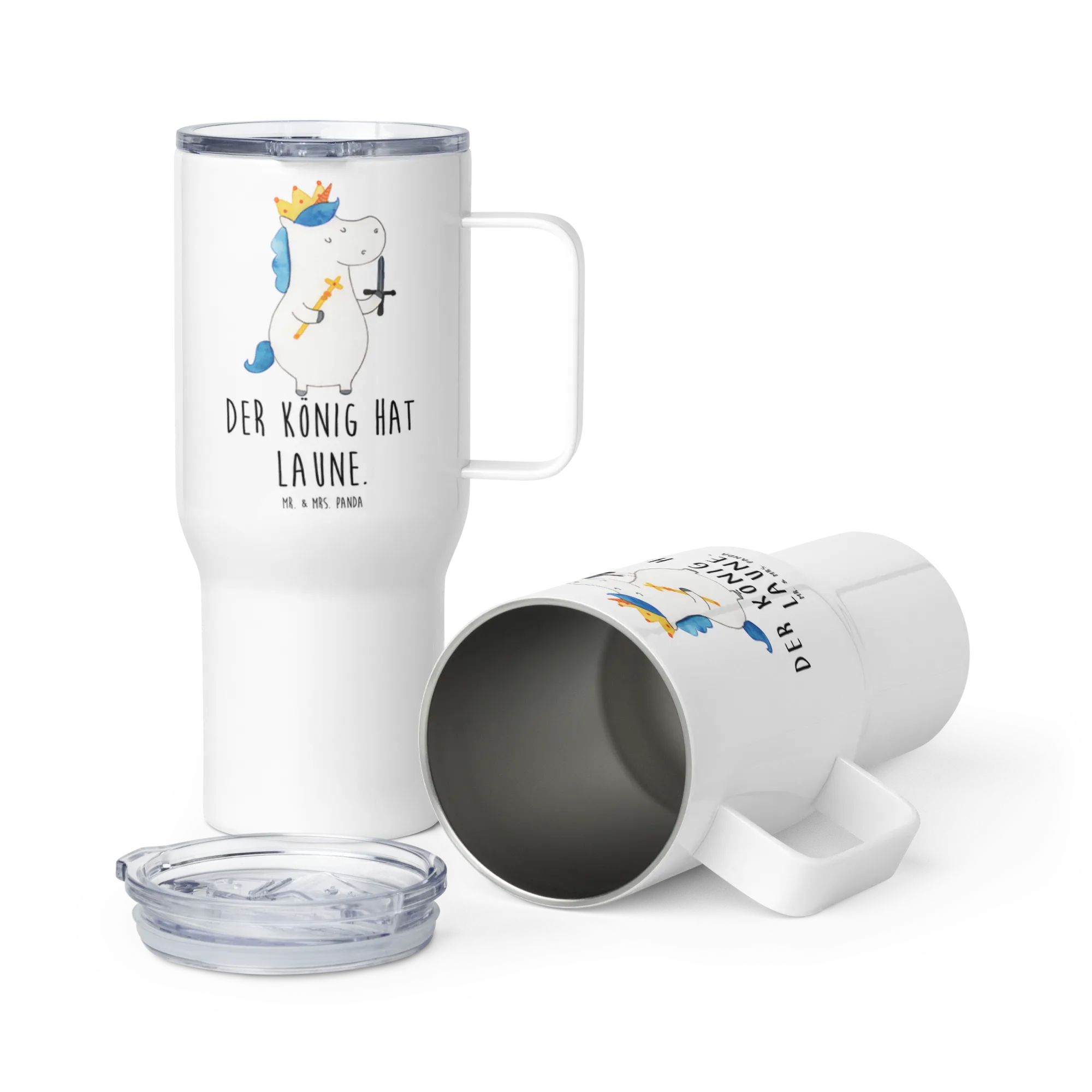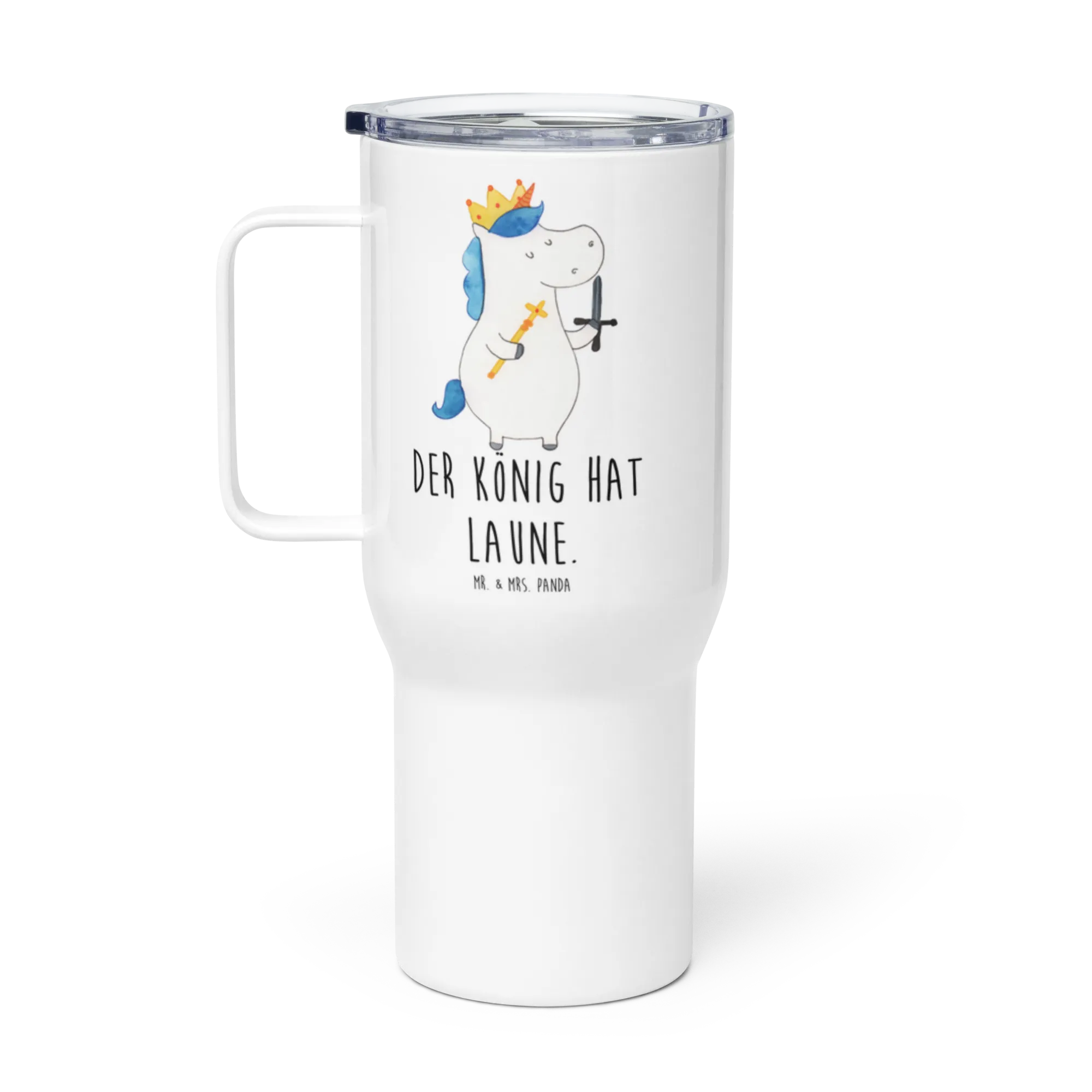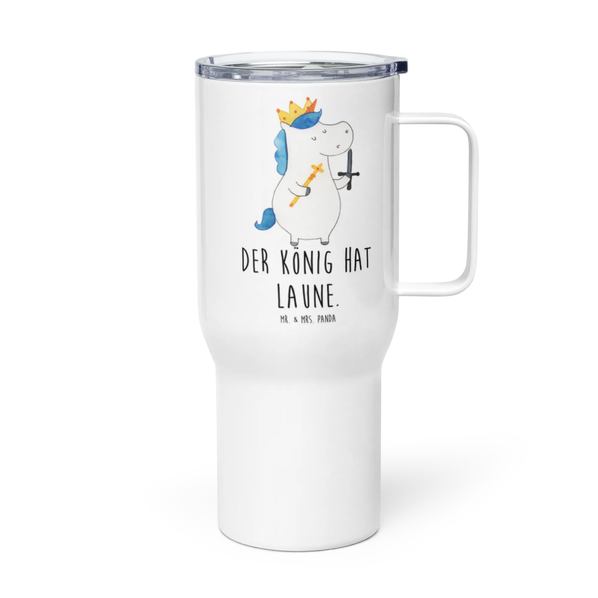 XXL thermal mug unicorn king with sword - with a saying