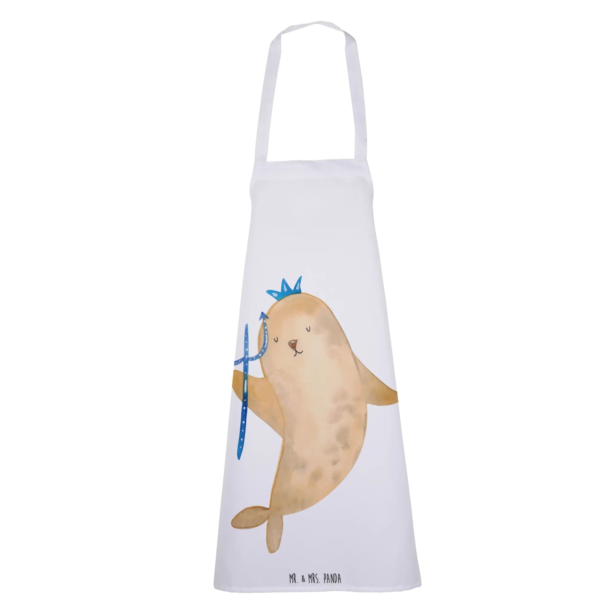 There's nothing quite like cooking in style, and what better way to showcase your unique personality than with the Mr. & Mrs. Panda Star Sign Aquarius Apron? This beautifully designed cooking apron is not just a practical kitchen essential; it's a celebration of the individual flair that comes with being an Aquarius. The captivating motif features a playful illustration of a seal adorned with a crown and scepter, perfectly embodying the spontaneous and grandiose spirit of the Aquarius zodiac sign.