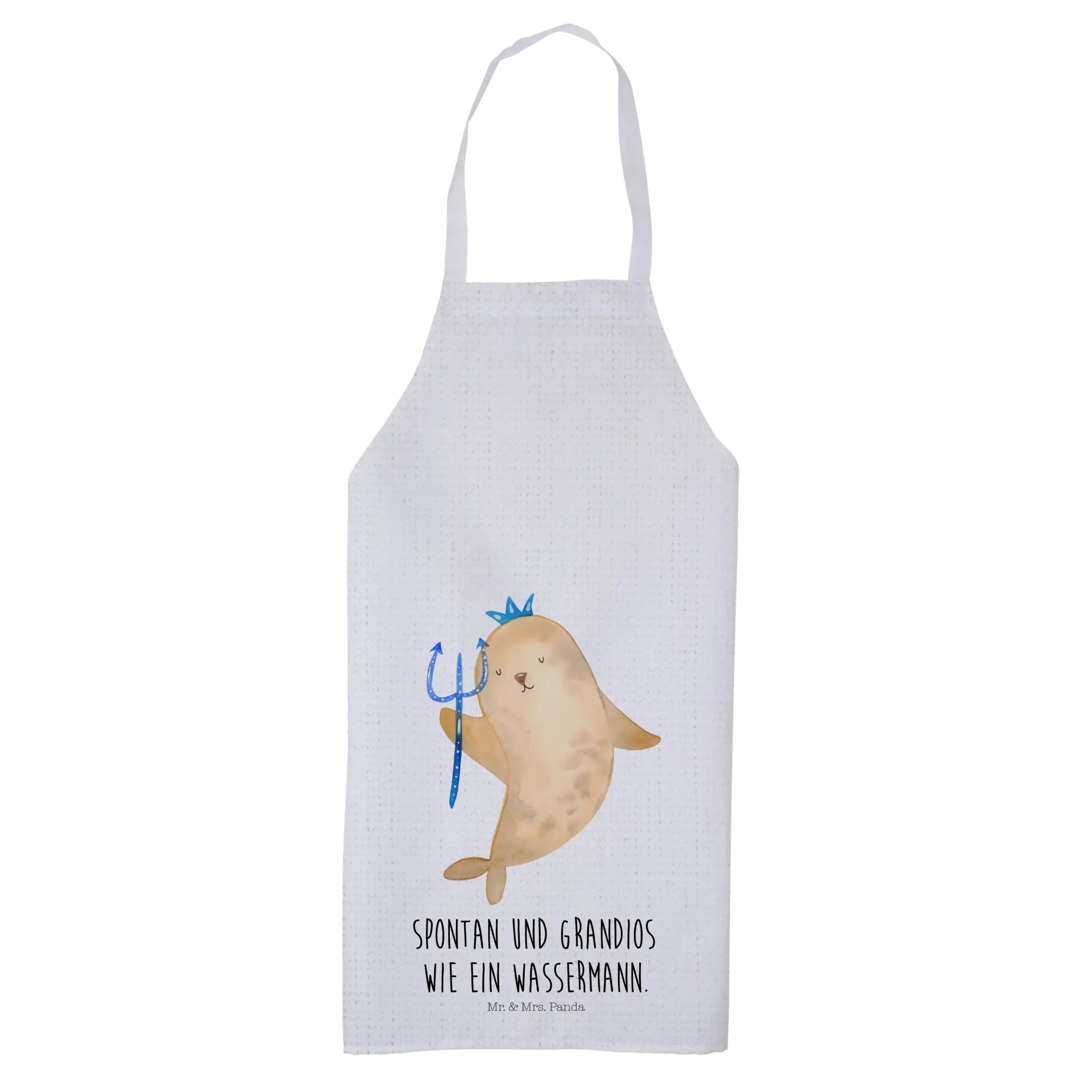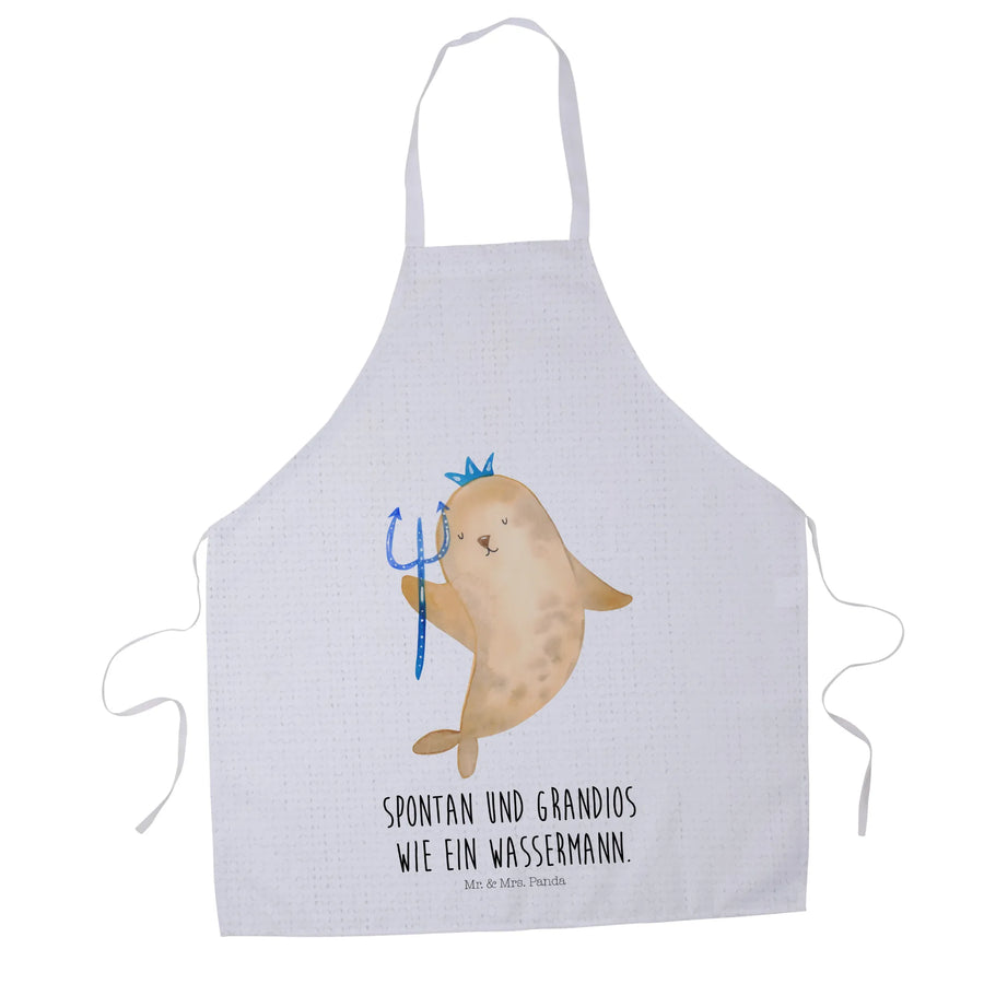 Introducing the delightful Mr. & Mrs. Panda Aquarius Apron, the ultimate gift for the creative, friendly, and adventurous souls born under the sign of Aquarius! Whether you’re baking a cake, grilling dinner, or whipping up a gourmet dish, this charming apron radiates personality and flair. Handmade with love, this apron is adorned with a whimsical motif of a playful seal wearing a crown and holding a scepter while embodying the spontaneity of an Aquarius. With the slogan 'Spontan und grandios wie ein Wassermann', it’s not just a cooking accessory; it’s a fun statement piece!