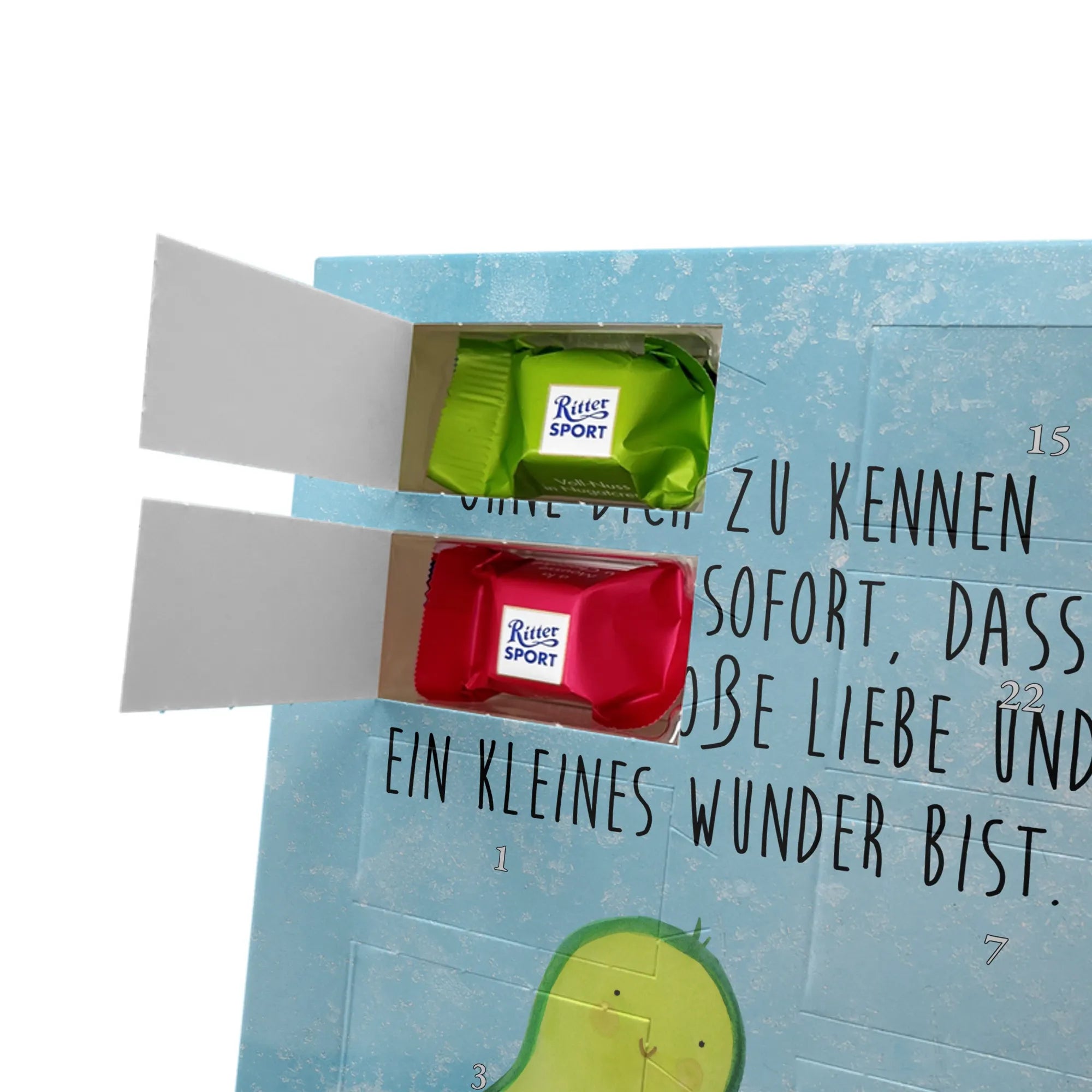 Personalisiertes Schoko-Foto Adventskalender von Mr. & Mrs. Panda – zaubere ein Lächeln in die Adventszeit mit einem persönlichen Foto und unseren liebevollen Motiven & Sprüchen. Der Kalender ist hochwertig bedruckt, verfügt über seidenmatte Oberflächenveredelung und bedruckte Seitenflächen für ein besonders schönes Erscheinungsbild. Bitte lade ein Foto in hoher Auflösung hoch und achte auf den richtigen Bildausschnitt, damit wichtige Details nicht verloren gehen. Verwende nur Bilder, bei denen du die Rechte besitzt; Fotos werden weder aufbereitet noch zugeschnitten und personalisierte Foto Artikel sind vom Umtausch ausgeschlossen. Maße: 325 mm x 225 mm x 27 mm. Besonderheit: Der Adventskalender kann aufgehängt oder aufgestellt werden – ganz flexibel. Gefüllt ist er mit Ritter Sport Schokowürfeln in köstlichen Geschmacksrichtungen wie Mousse au Chocolat, Schoko Crisp, Voll-Nuss in Nougatcreme, Karamell Duo, Joghurt und Erdbeer-Joghurt. Ein persönliches, süßes Geschenk, das hochwertige Optik mit täglichem Genuss verbindet und die Vorfreude auf Weihnachten jeden Tag steigert.