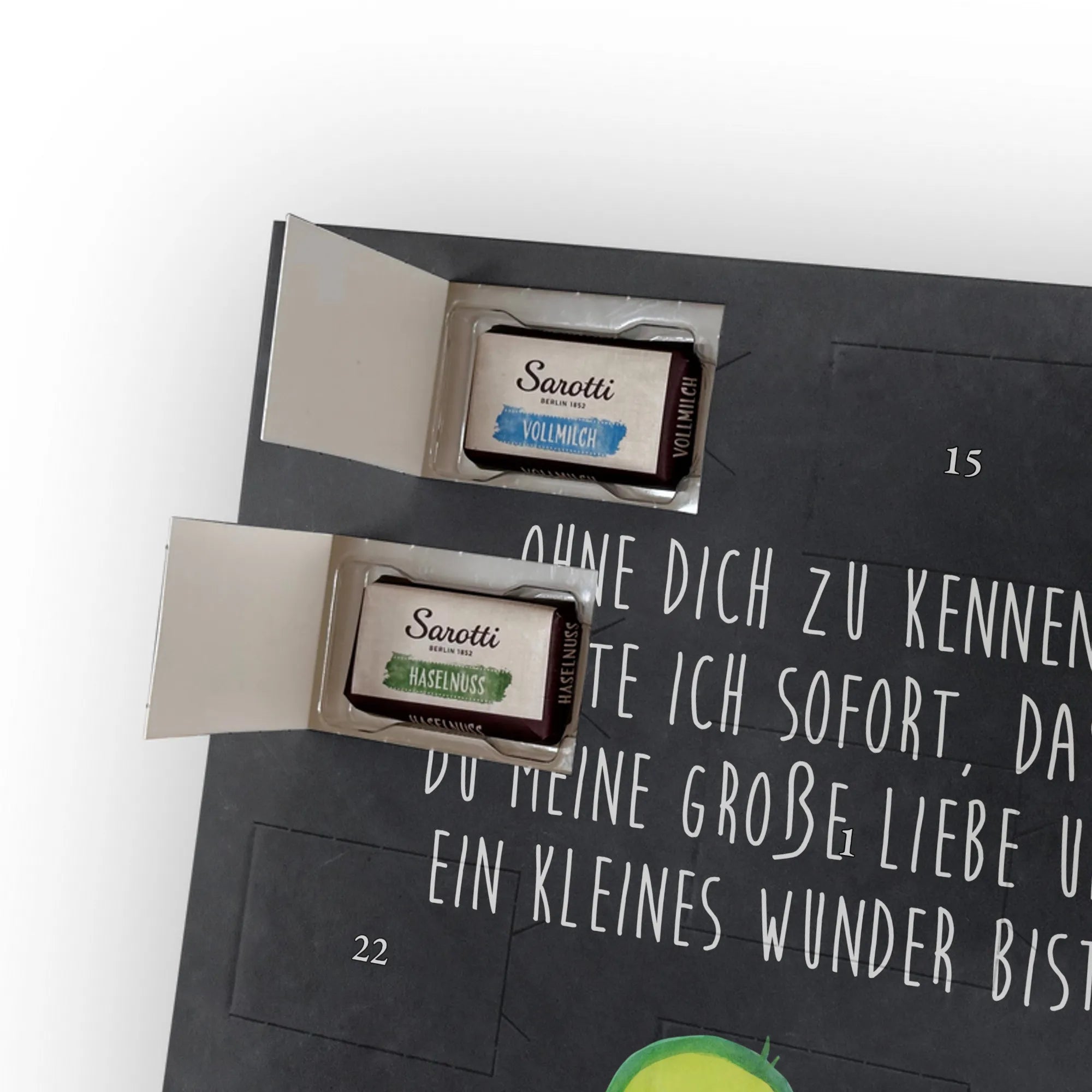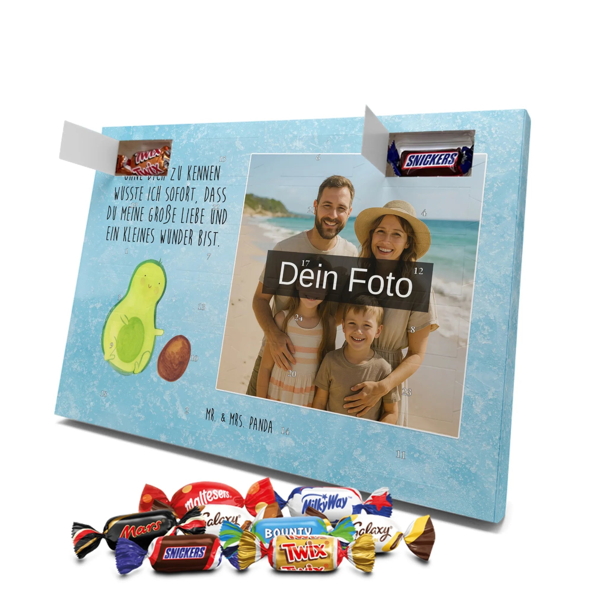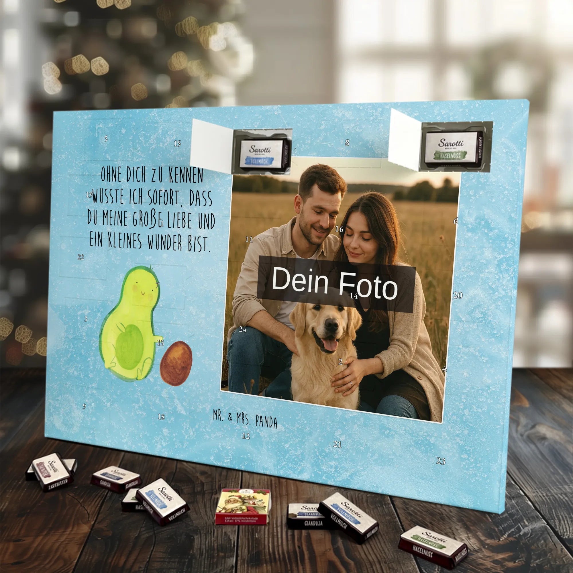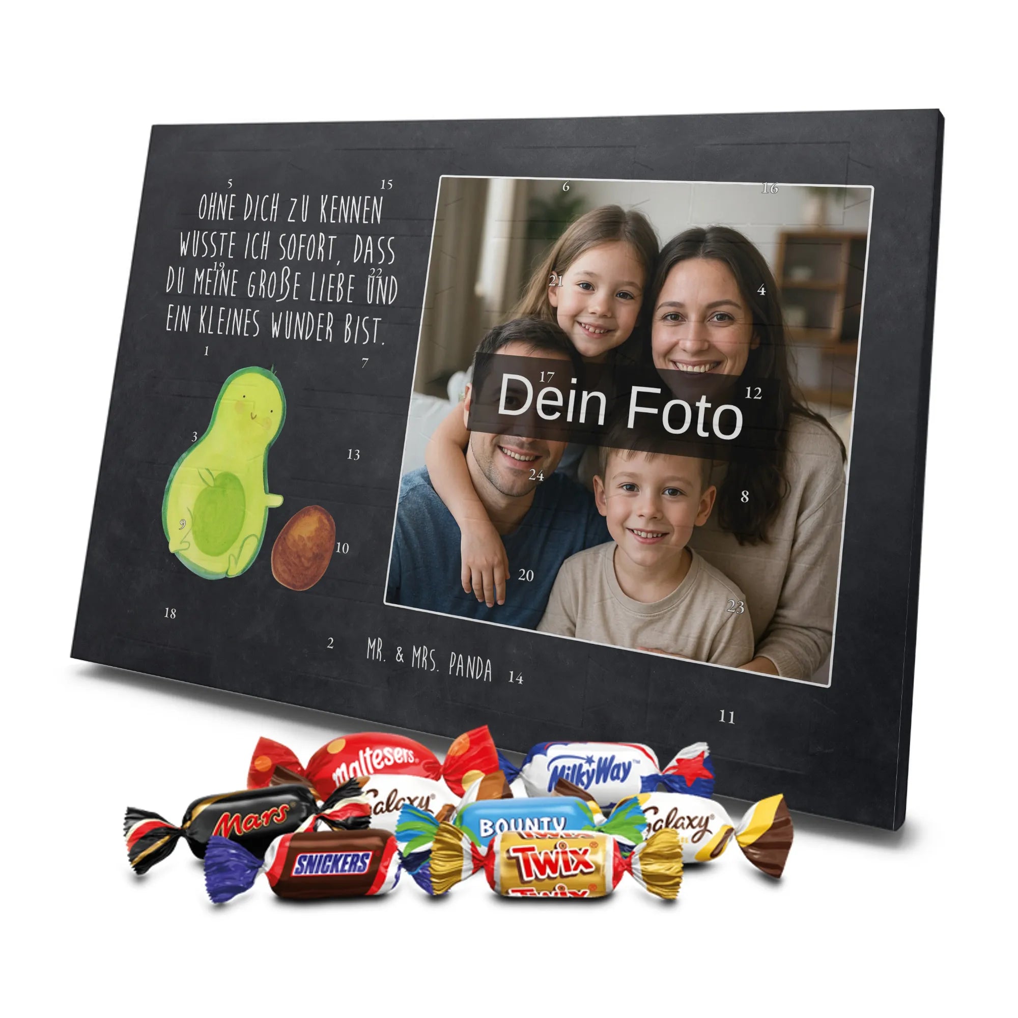 Personalisierter Schoko-Adventskalender mit Foto – das kleine Weihnachtswunder von Mr. & Mrs. Panda! Verschenke jeden Tag Vorfreude: Der Kalender ist liebevoll gestaltet mit unseren herzlichen Illustrationen und Sprüchen, während dein Foto die persönliche Mitte bildet. Bitte lade ein hochauflösendes Foto hoch und prüfe den Bildausschnitt, damit nichts Wichtiges verloren geht. Nutze nur Bilder, für die du die Rechte hast. Die hochwertige, seidenmatte Veredelung und die bedruckten Seitenflächen garantieren ein edles Erscheinungsbild. Maße: 355 mm x 245 mm x 11 mm; lässt sich sowohl aufhängen als auch aufstellen. Achtung: Fotos werden nicht nachbearbeitet oder zugeschnitten; personalisierte Artikel sind vom Rückgaberecht ausgeschlossen. Gefüllt mit 24 einzeln verpackten Schokoladentäfelchen aus den vier Geschmacksrichtungen Vollmilch, Nougat, Zartbitter und Haselnuss – von Sarotti® und Confiserie Heidel®. Insgesamt enthält der Kalender 107 g Markenschokolade. Ein persönliches Geschenk mit süßem Inhalt, ideal für Partner, Familie und Freunde, verpackt mit der typischen Mr. & Mrs. Panda Liebe zum Detail.