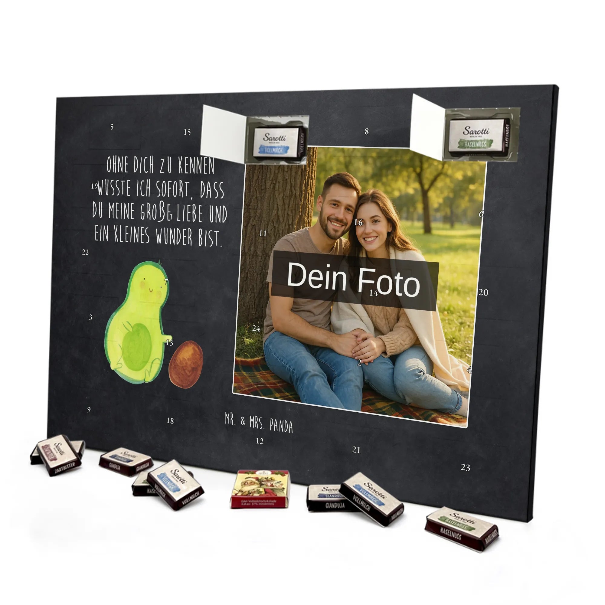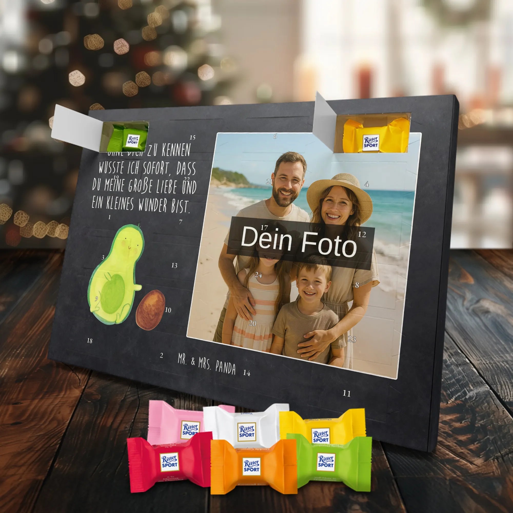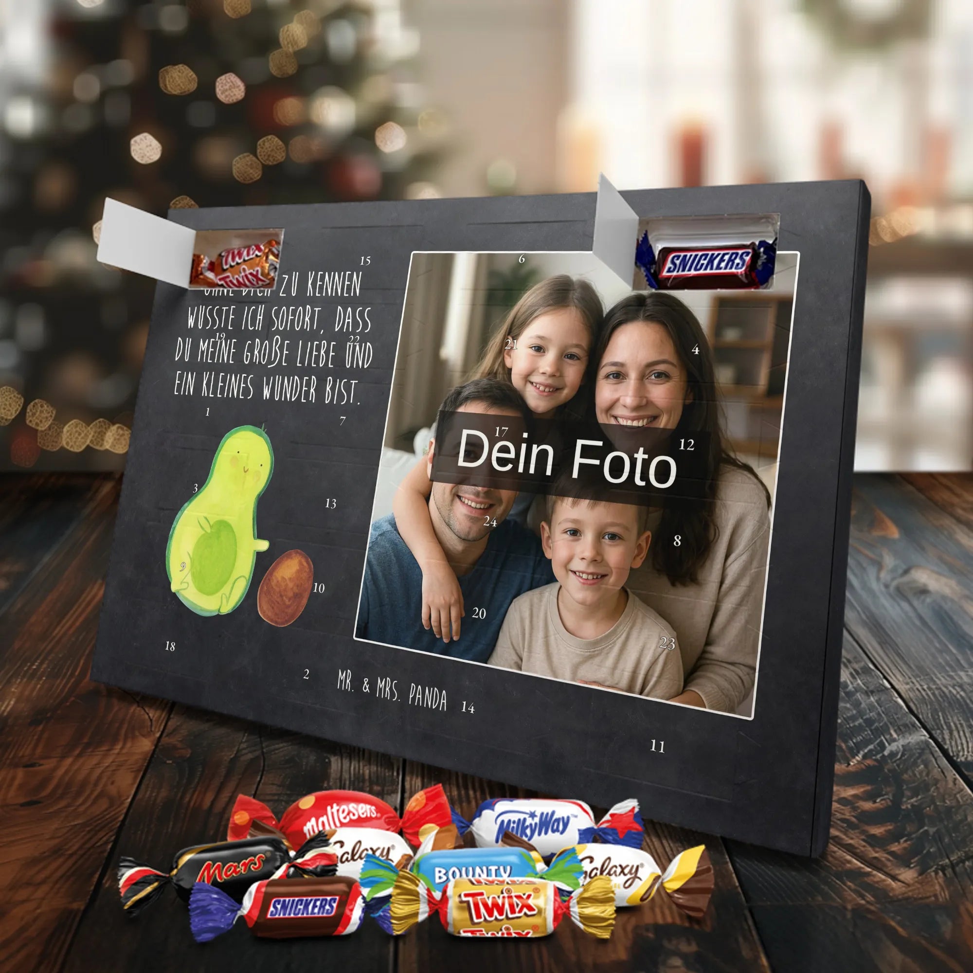 🐼 Ideales Foto-Geschenk: Personalisierter Schoko Foto Adventskalender mit Mr. & Mrs. Panda Sprüchen und deinem Bild.