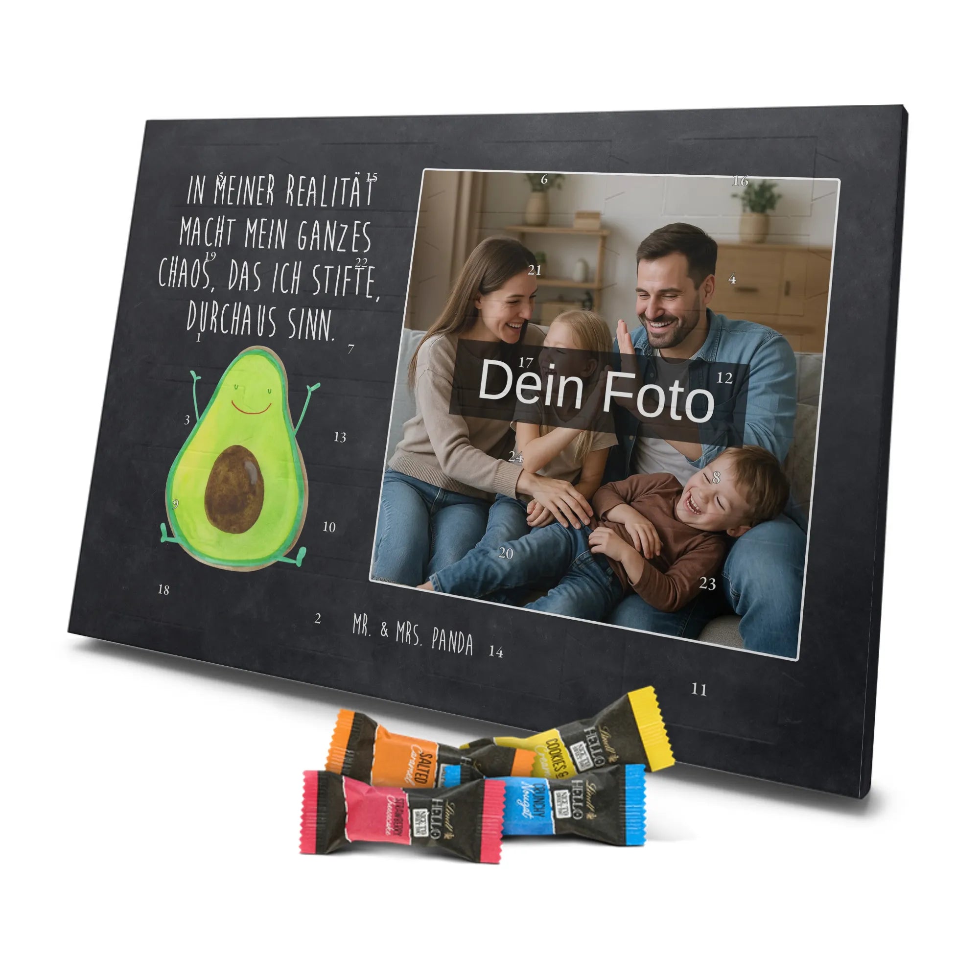 🐼 PERSONALISIERTES ADVENTS-SCHOKOKALENDER: Foto, Mr. & Mrs. Panda Motive & Lindt Hello Minis vereint.