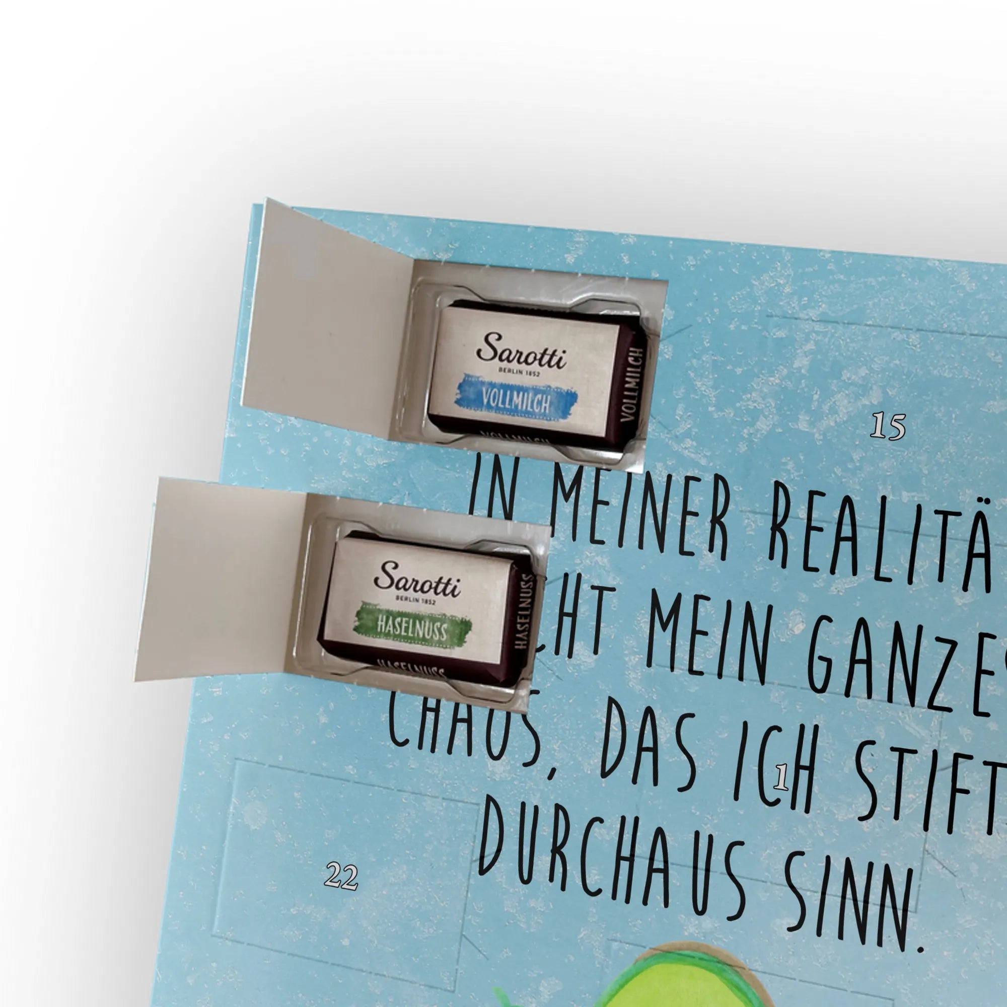 🐼 LECKERE FÜLLUNG: 24 Täfelchen, 107 g Markenschokolade (Sarotti® & Confiserie Heidel®) in vier Sorten.