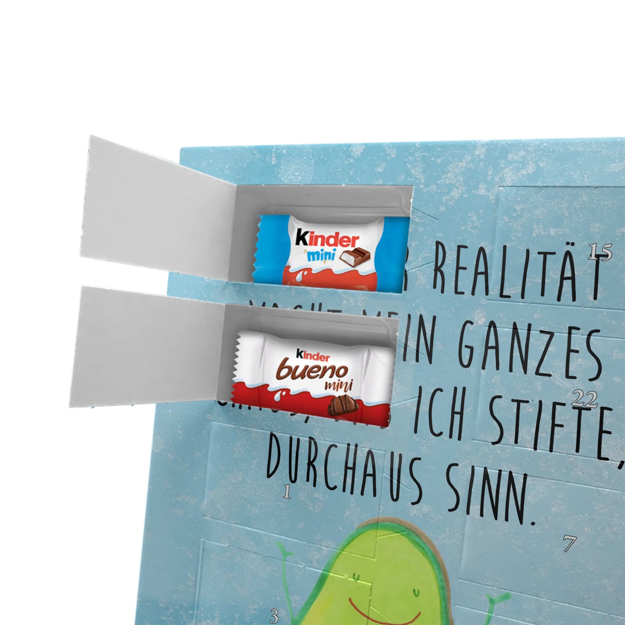 Unser personalisierten Schoko Foto Adventskalender ist ein echtes Highlight in der Adventszeit – handlich, individuell und voller süßer Überraschungen. Du personalisierst die Vorderseite mit deinem liebsten Foto und wir kombinieren es mit liebevollen Motiven und Sprüchen von Mr. & Mrs. Panda. Bitte achte auf eine ausreichende Bildauflösung und einen passenden Bildausschnitt, damit das Druckergebnis gestochen scharf ist. Lade nur Bilder hoch, deren Rechte du besitzt oder bei denen du die Erlaubnis hast, besonders wenn Personen darauf zu sehen sind. Wichtig: Fotos werden nicht retuschiert oder zugeschnitten; personalisierte Foto-Artikel sind vom Widerruf ausgeschlossen. Der Kalender besticht durch brillante Druckqualität und eine seidenmatte Oberflächenveredelung sowie bedruckte Seitenflächen. Maße: 355 mm x 245 mm x 11 mm. Du kannst ihn entweder aufstellen oder an die Wand hängen. Gefüllt ist der Adventskalender mit kinder® Schokolade, inklusive kinder® Schoko-Bons, kinder® Bueno mini und kinder® Schokolade mini. Ein liebevolles, persönliches Geschenk für Kinder, Freunde oder die bessere Hälfte – individuell, süß und mit dem typischen Mr. & Mrs. Panda Charme.