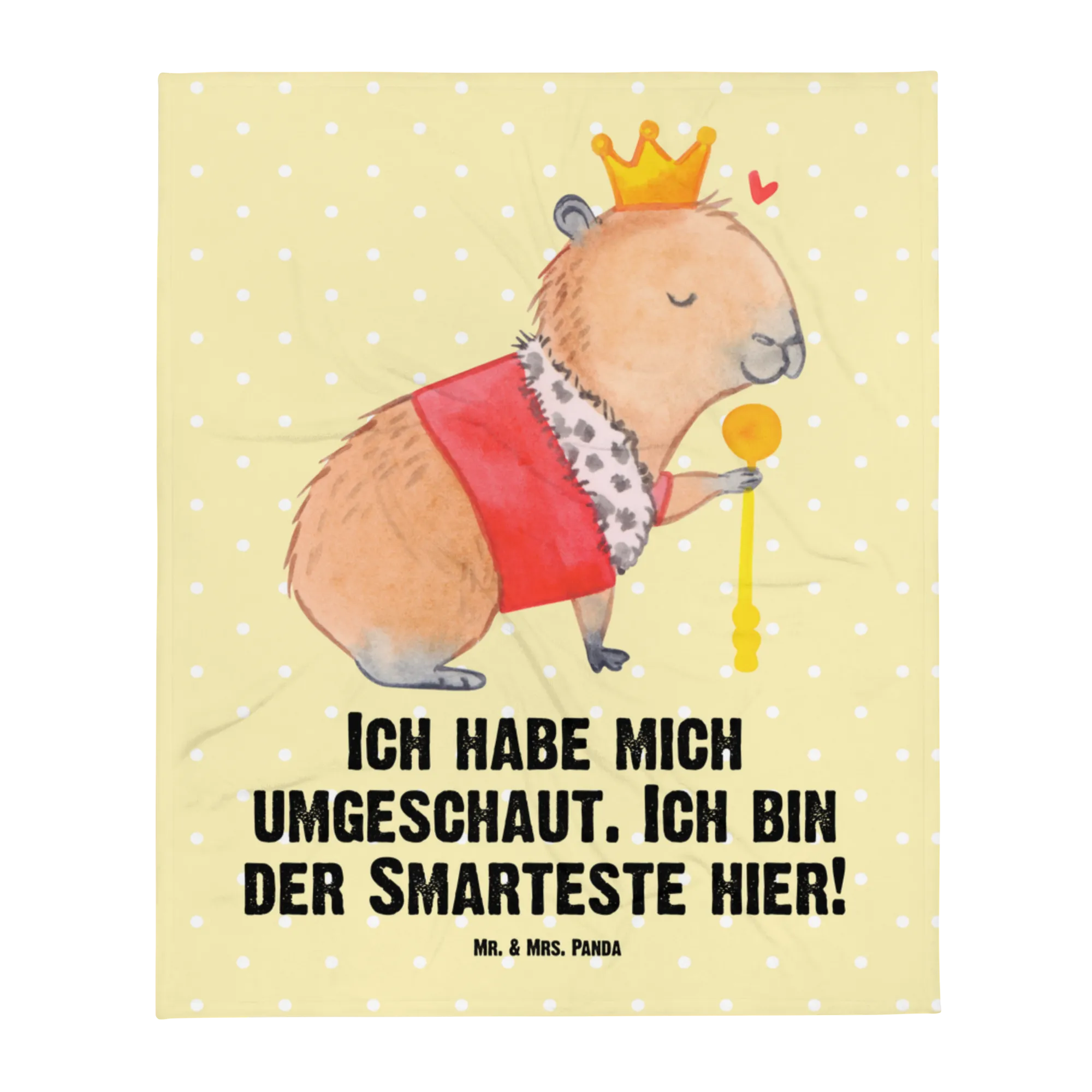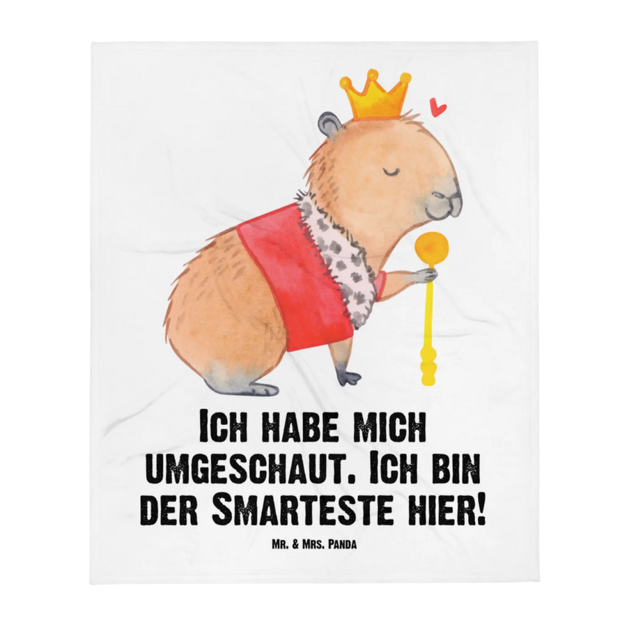 Introducing the marvelous Capybara King, sitting regally with his golden crown and luxurious purple cloak, elegantly trimmed with white fur. His satisfied expression, eyes gently closed, invites you to feel the peaceful aura he radiates. Grasping a golden scepter, he emanates calm wisdom as a heart floats beside him. A gentle reminder from the wise Capybara King: 'Ich habe mich umgeschaut. Ich bin der Smarteste hier!' – let this resonate, reminding you to embrace your own intelligence and embrace the king within yourself.