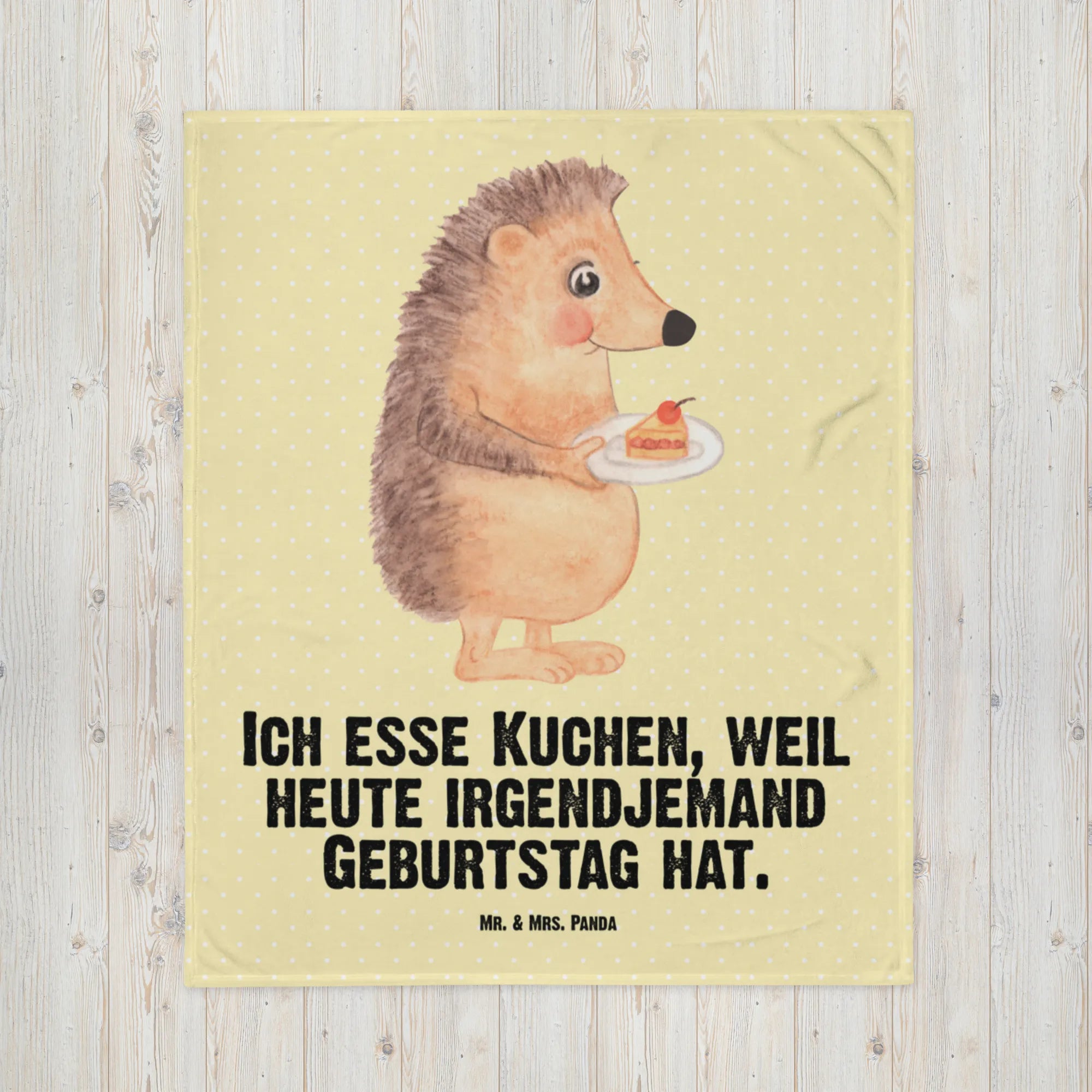 Baby blanket Hedgehog piece of cake - with saying - Pastel Yellow
