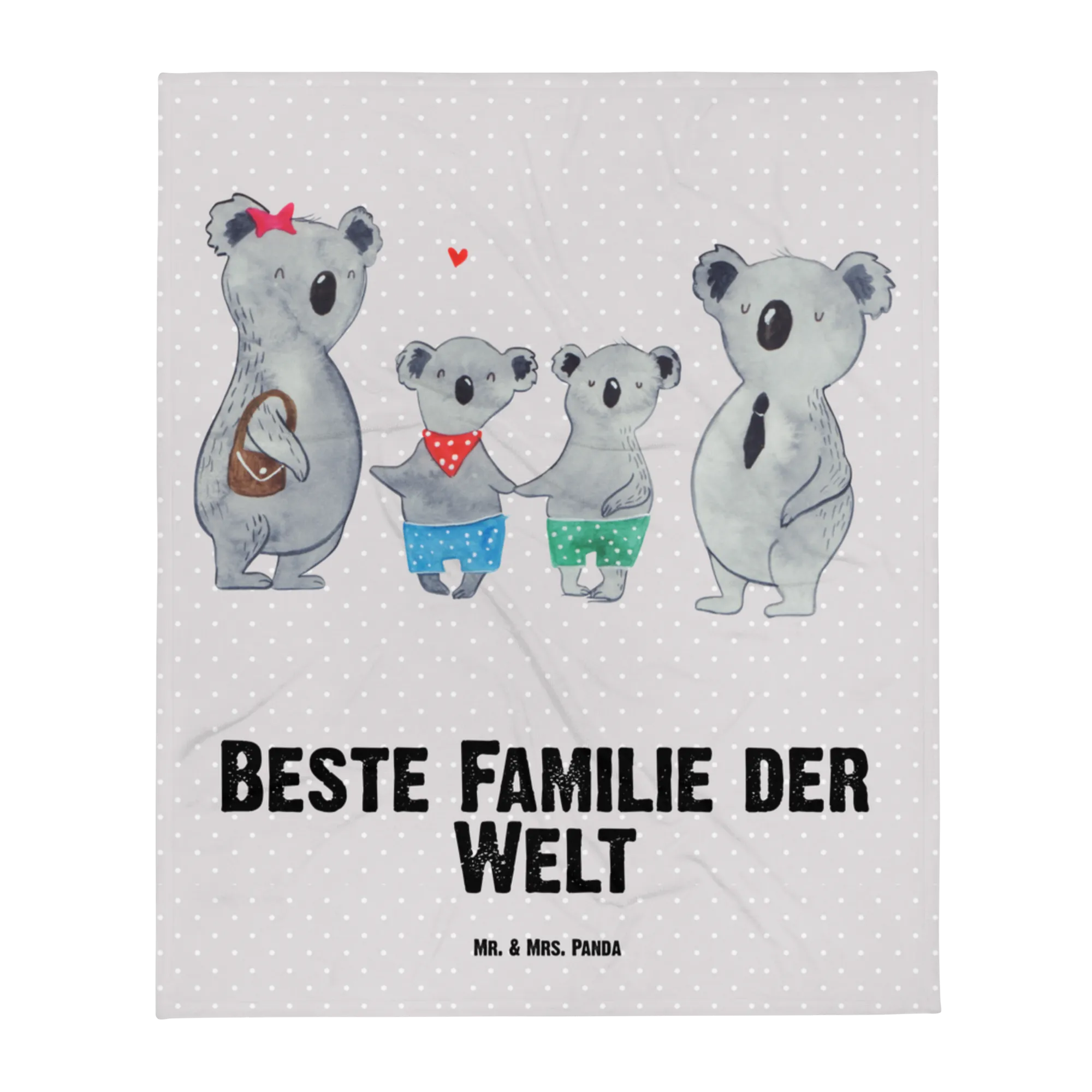 Baby blanket Koala family with two kids - with saying - Pastel Blue