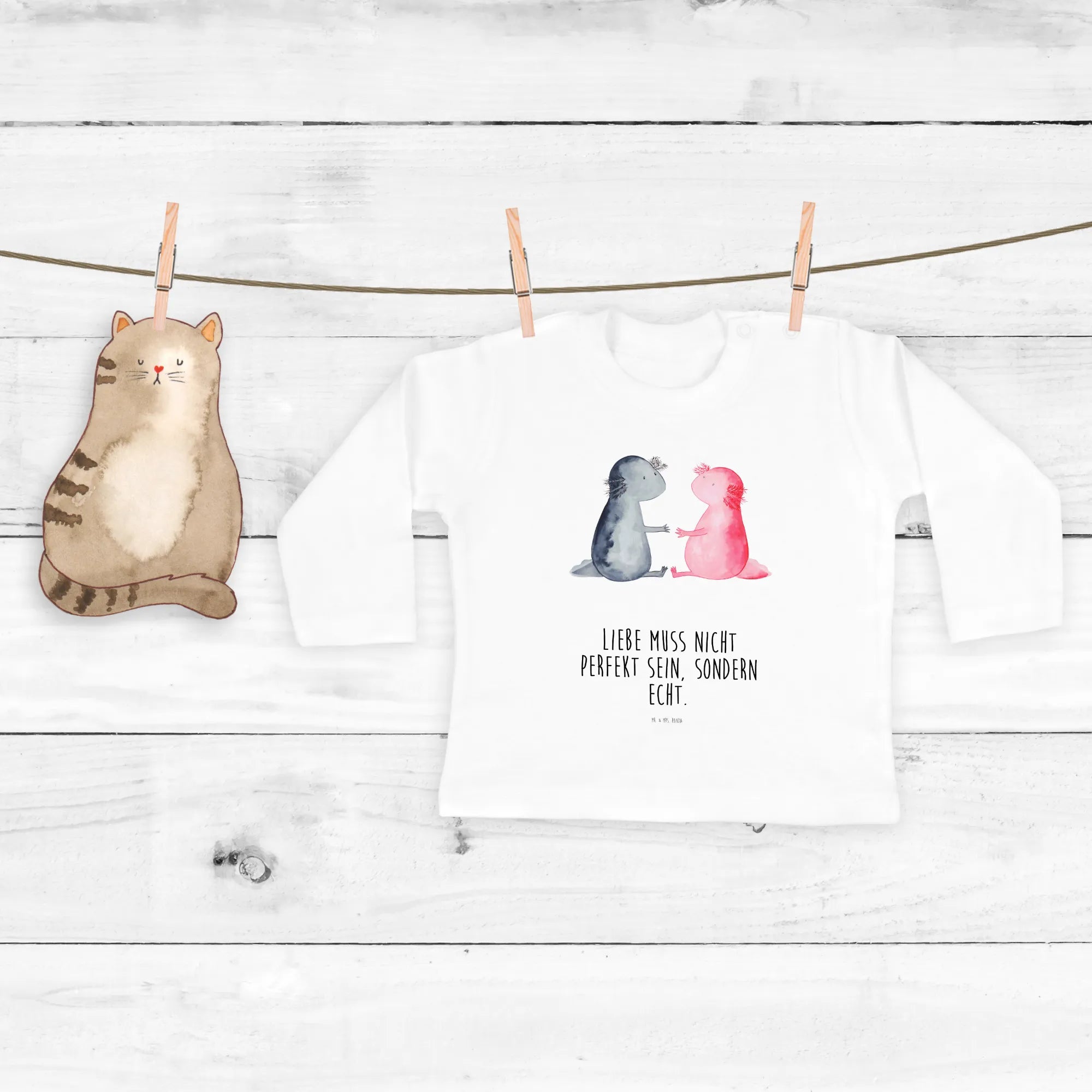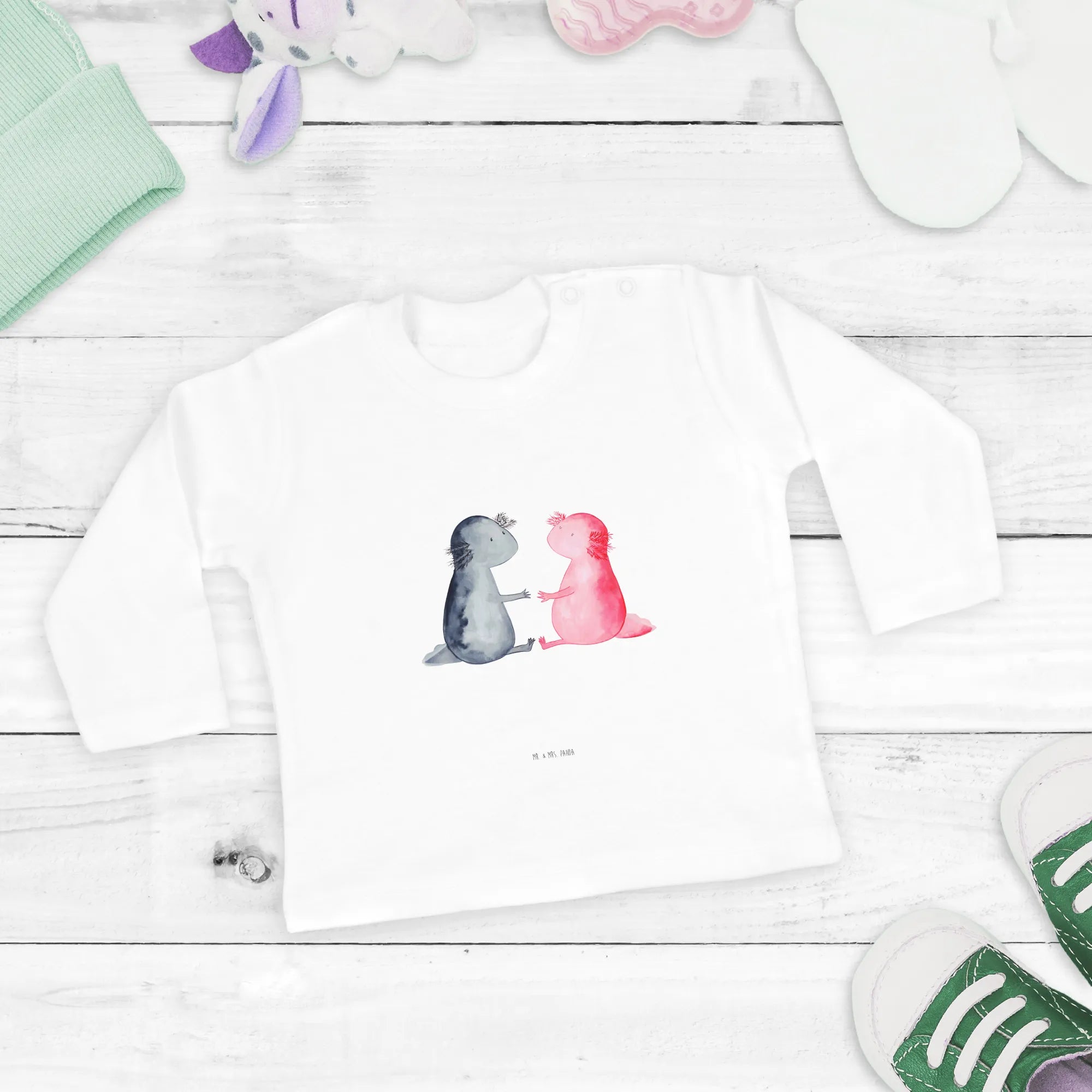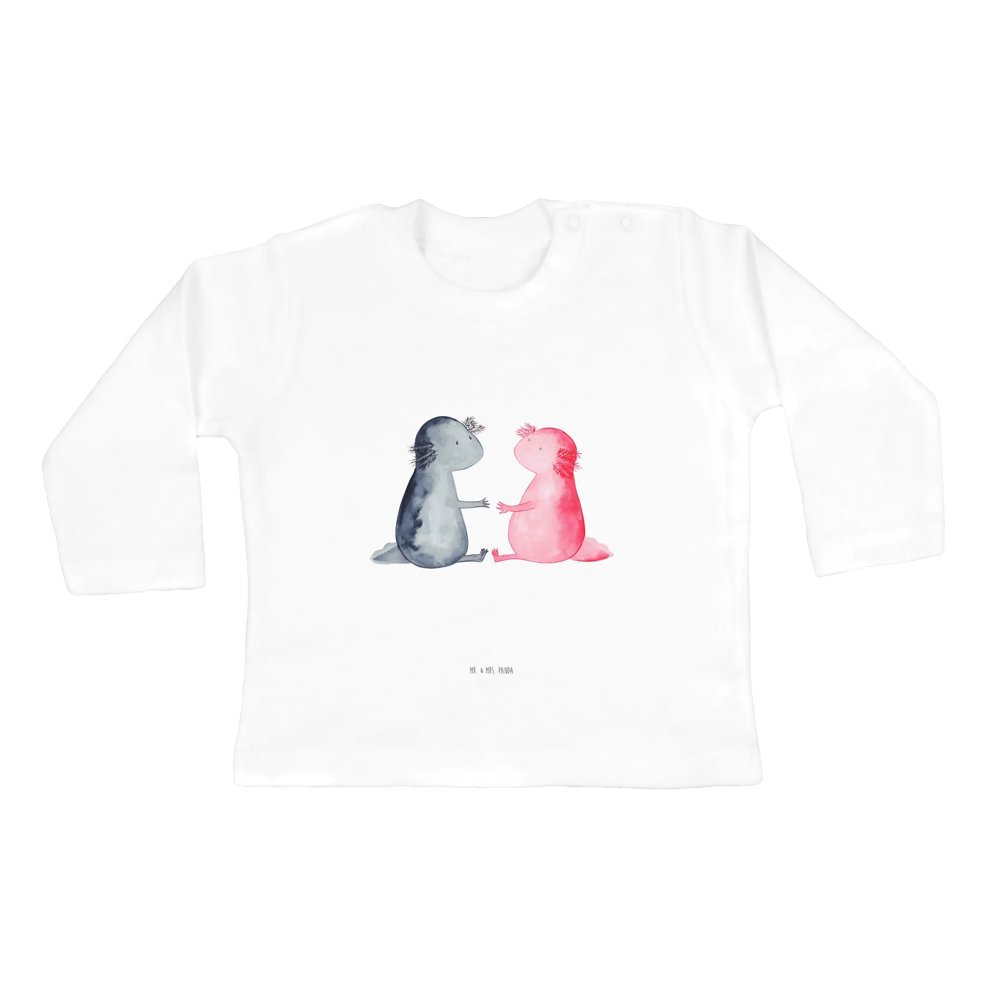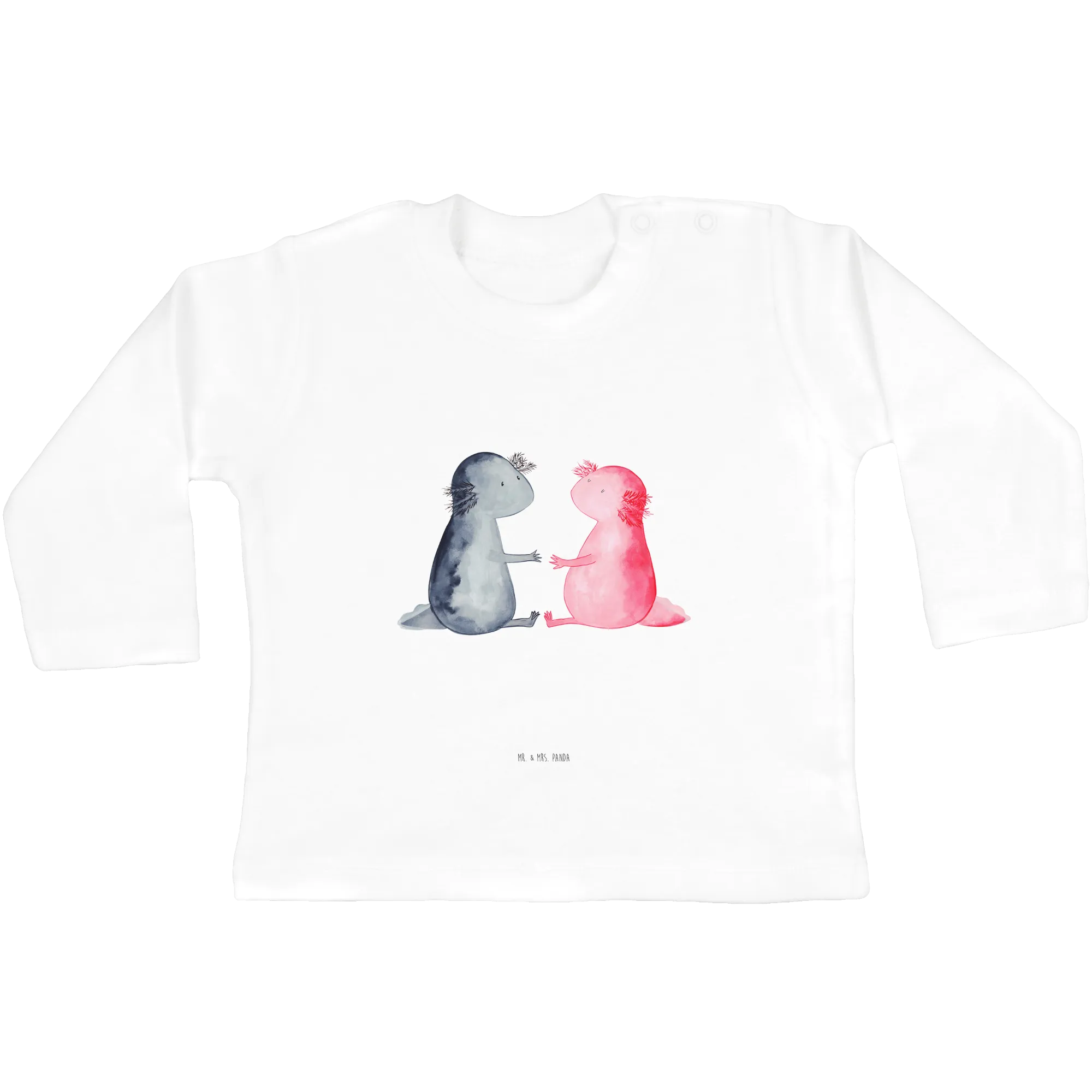 Looking for the perfect gift for a little one in your life? Look no further than the adorable Baby Long Sleeve Axolotl in Love from Mr. & Mrs. Panda! This charming piece of clothing is not just about keeping your baby cozy; it’s a sweet expression of love and creativity. Axolotls, also affectionately known as Mexican walking fish, are fascinating amphibians with their unique charm and vibrant colors. Our long-sleeve shirt features two cute axolotls, hand-drawn by Mrs. Panda in her signature style, holding hands and embodying a delightful theme of friendship and love.