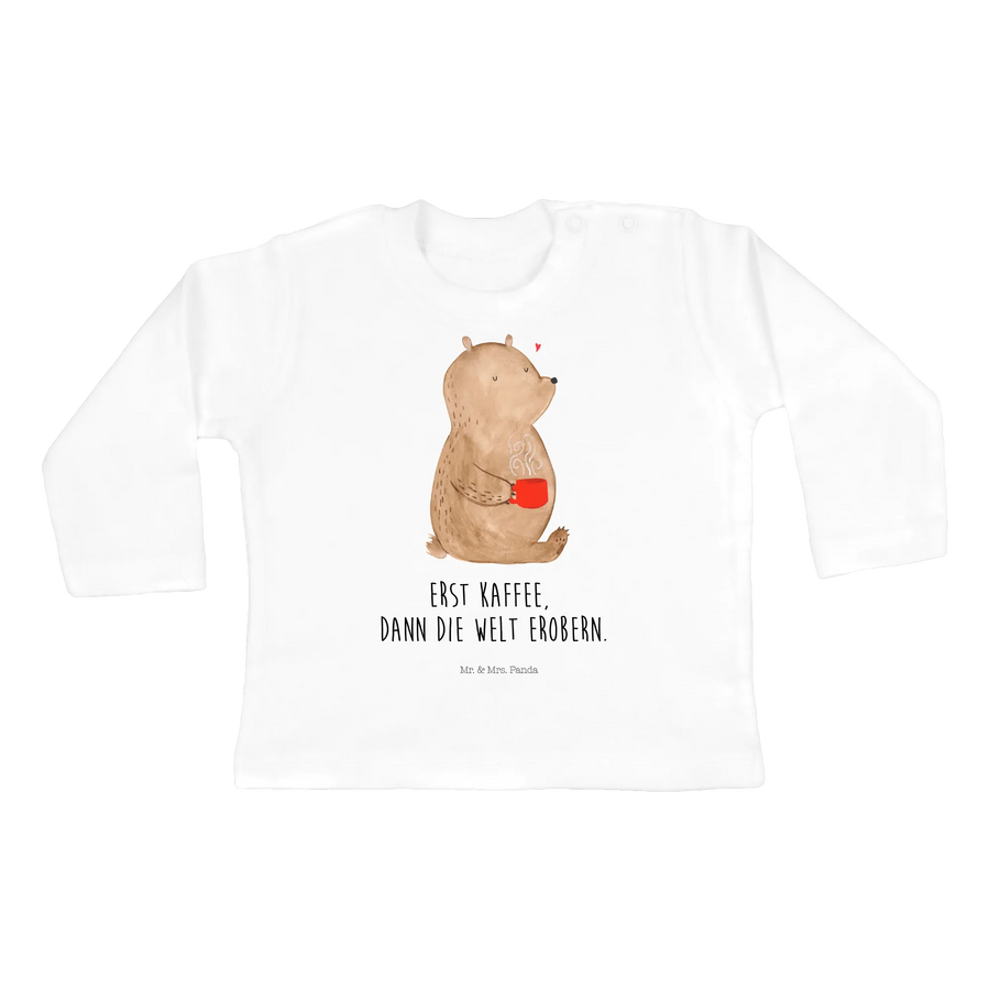 This shirt is designed to be both cute and practical, keeping your baby warm while they sleep or play. It’s also a lovely conversation starter when you’re out and about. Imagine fellow parents smiling and commenting on your baby’s adorable outfit! The Bear Coffee motif along with our famous "Erst Kaffee, dann die Welt erobern" slogan really adds a charming touch to the design.