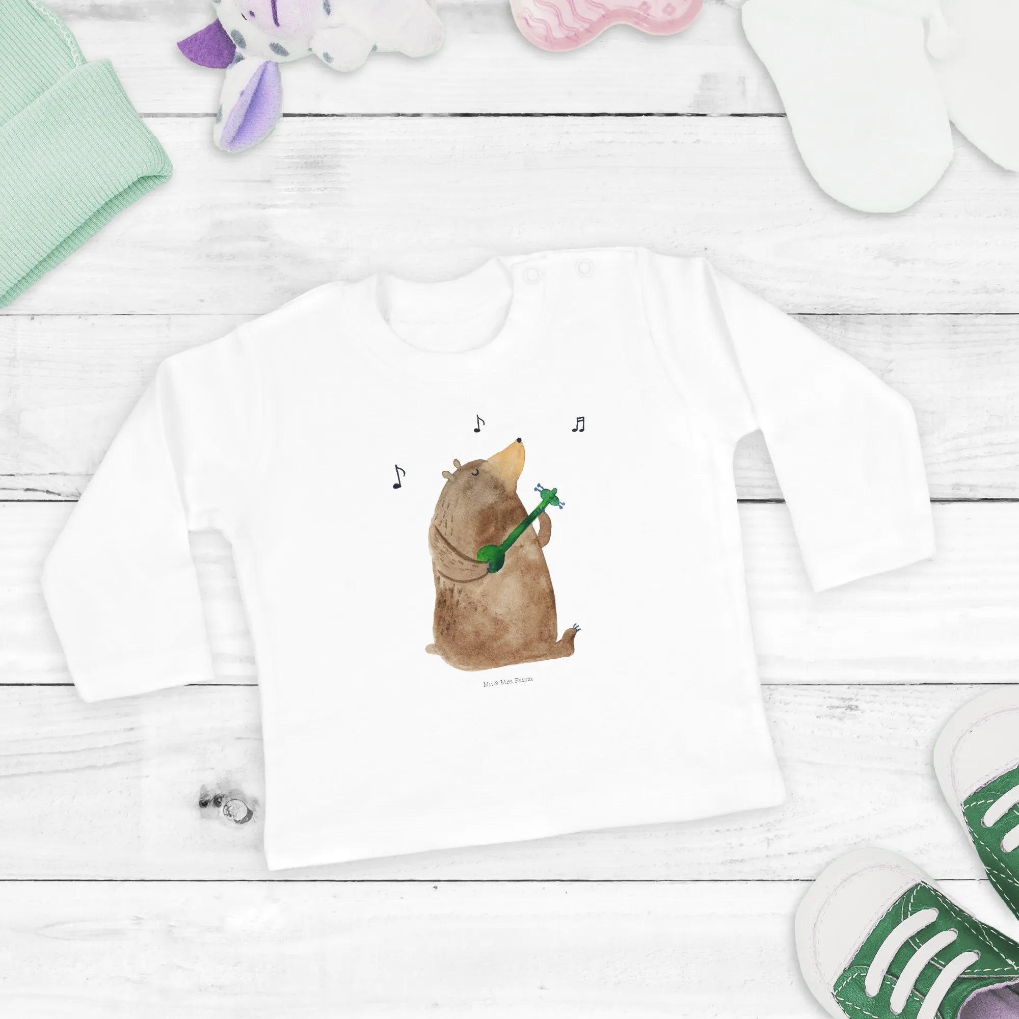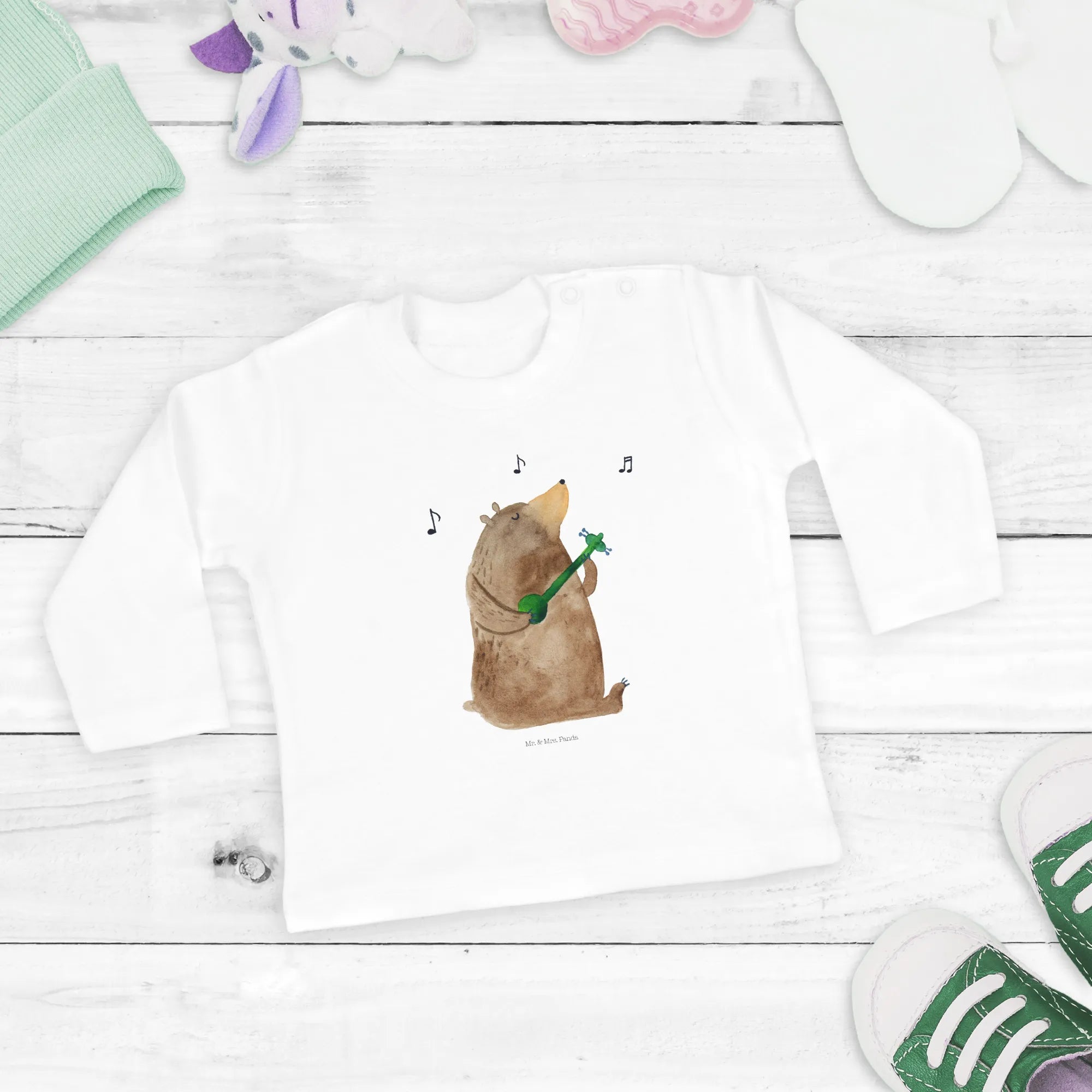 Introducing the delightful Baby Long-Sleeve Bear Song from the Mr. & Mrs. Panda collection! 🌟 This adorable long-sleeve top is crafted from 100% organic cotton, making it not only super soft against your baby’s sensitive skin but also gentle on the planet. The charming Bear Song motif features a cute bear strumming a guitar, and it's sure to bring a smile to everyone's face! Perfect for your little one, this piece showcases both style and comfort, making it an ideal choice for playdates, family outings, or just lounging at home.