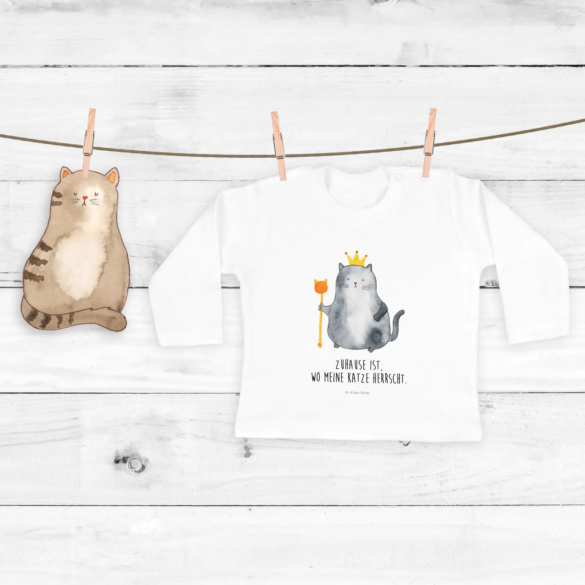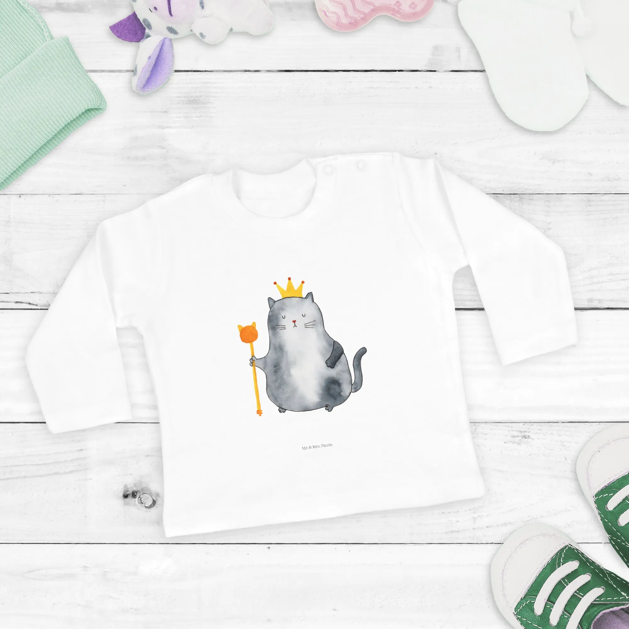 Introducing the adorable Baby Long-Sleeve King Cat from the charming Cats - Collection by Mr. & Mrs. Panda! This delightful piece of clothing is designed especially for the littlest cat lovers, making it the perfect gift for new parents or proud cat owners looking to celebrate their furry friends in style.
