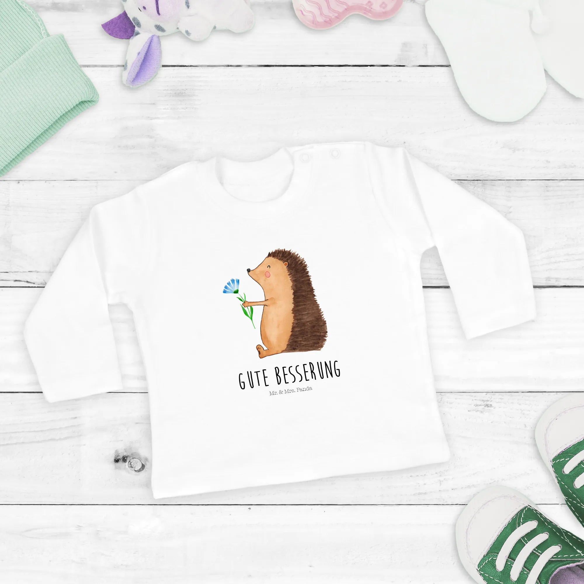 Imagine a tiny hedgehog holding a beautiful flower, ready to spread joy and love. This motif carries a hint of playfulness, capturing the essence of childhood curiosity and warmth. Perfect for brightening up the gloomy days that sometimes come with illness, this long-sleeve shirt is a thoughtful way to send "Get Well Soon" wishes to a sick child or to offer a cozy hug to those recovering.