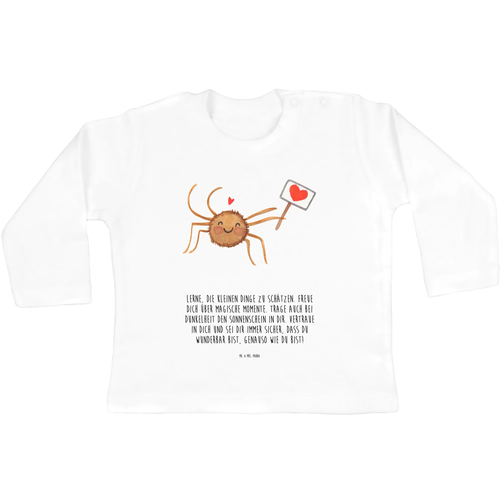 Imagine your baby wearing this cute long-sleeve shirt adorned with the heartwarming and vibrant image of Spider Agathe. The friendly spider beams joyfully, holding a little sign with a heart – a perfect reminder to embrace love and positivity! This engaging design goes beyond just aesthetics; it embodies motivation, happiness, and trust, making it an ideal gift for baby showers, birthdays, or as a special "thank you" present for any occasion.
