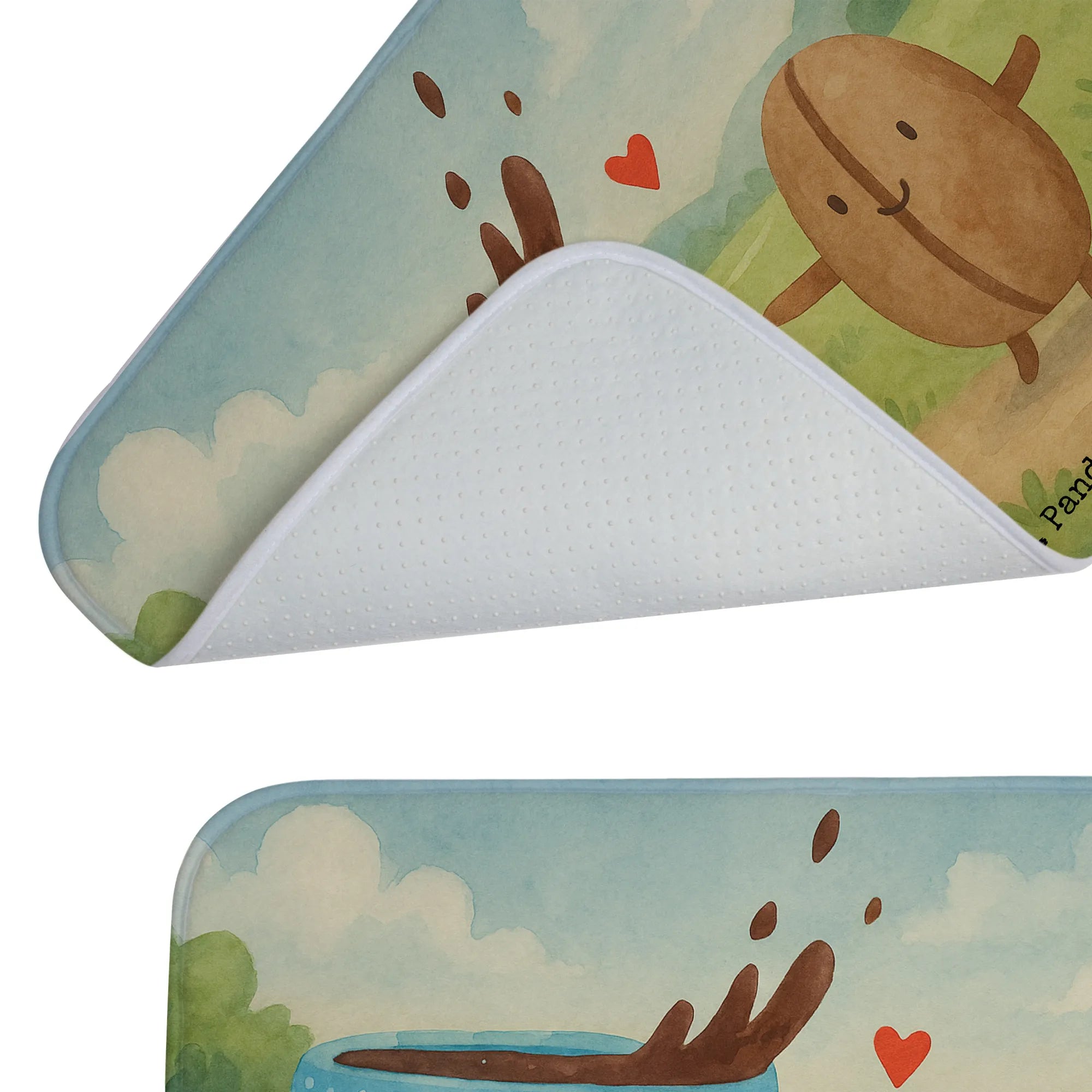 Entdecke den bezaubernden Badvorleger von Mr. & Mrs. Panda, ein Must-Have für dein Badezimmer! Mit einer Größe von 590 mm x 400 mm bietet er ausreichend Platz, um dir jeden Morgen ein angenehmes Gefühl zu geben. Die flauschige Premium Kunstfaser sorgt dafür, dass du das Gefühl von Wolken unter deinen Füßen hast. Dank der speziellen Antirutsch Gummibeschichtung bleibt der Vorleger sicher an seinem Platz, egal ob du aus der Dusche oder Badewanne steigst. Die bedruckten Motive und Sprüche sind nicht nur schön anzusehen, sondern verleihen deinem Badezimmer einen persönlichen und kreativen Touch. Zudem ist der Badvorleger besonders saugstark, sodass er Flüssigkeiten schnell aufnimmt und sorgt für trockene Füße. Pflege ihn ganz einfach in der Waschmaschine bei 30°C und genieße jeden Tag dein frisches Badezimmer.