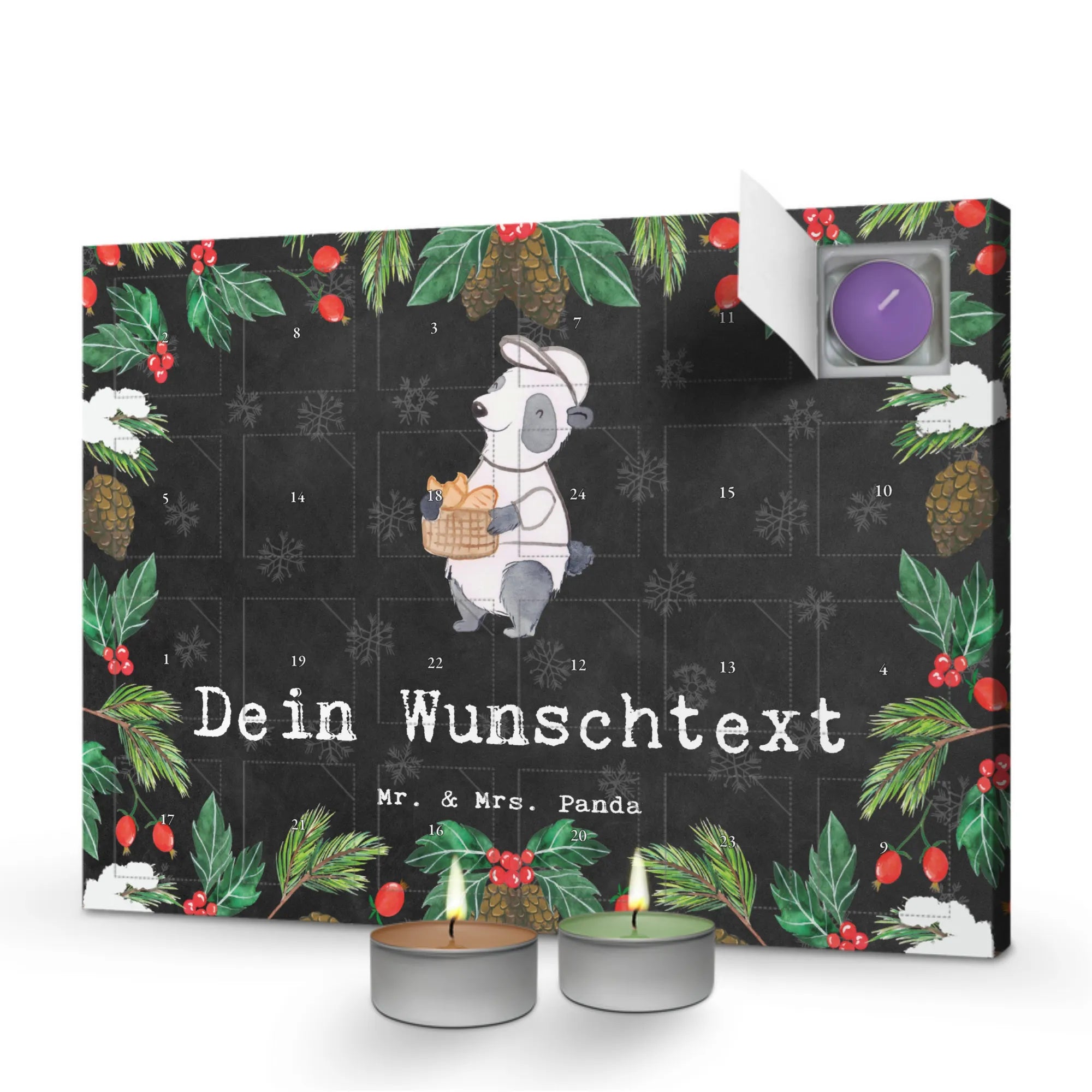 Schenke Vorfreude: Bestell jetzt den Duftkerzen Adventskalender personalisiert mit Mrs. Panda Motiv und mache die Adventszeit unvergesslich!