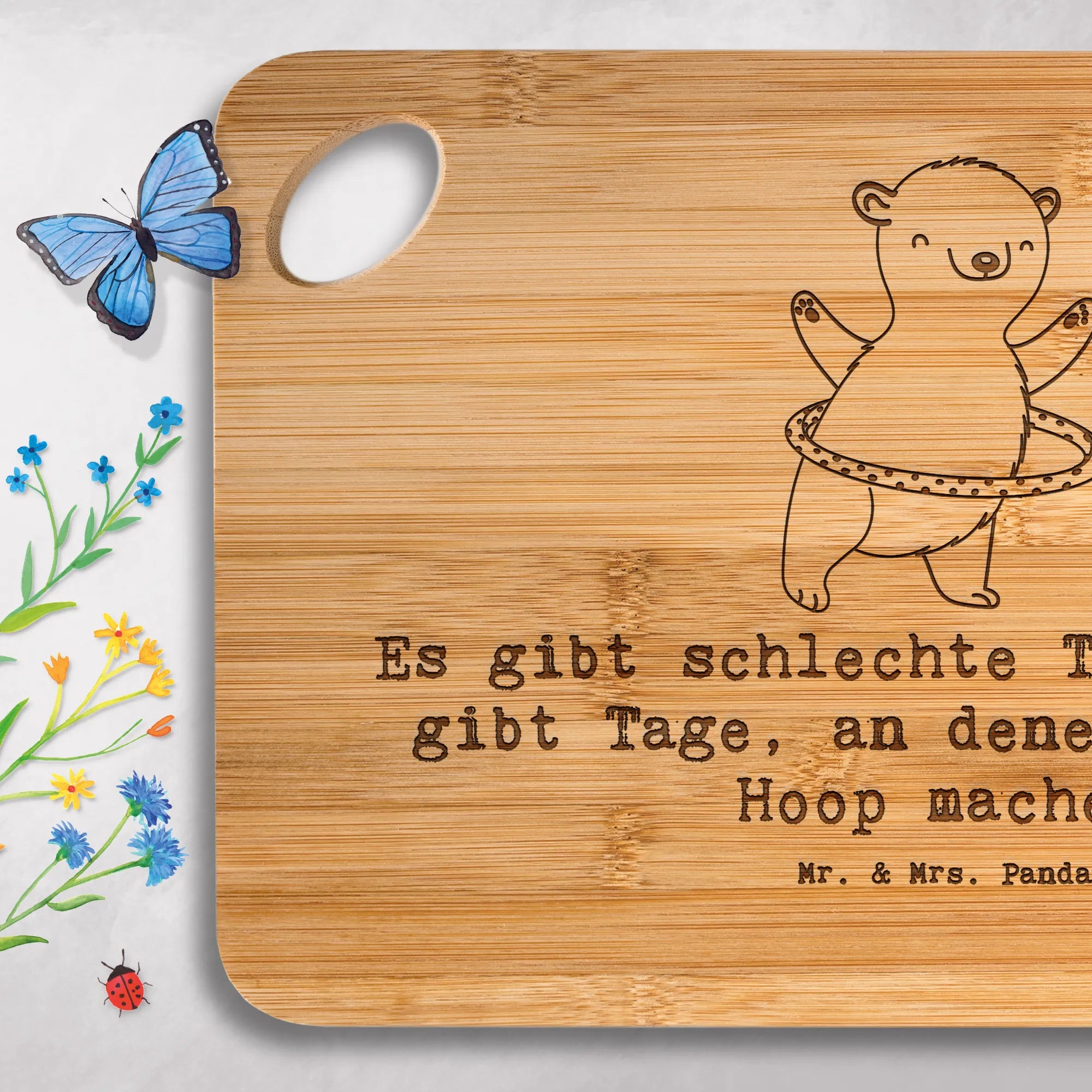 Bamboo chopping board bear hula hoops - with saying