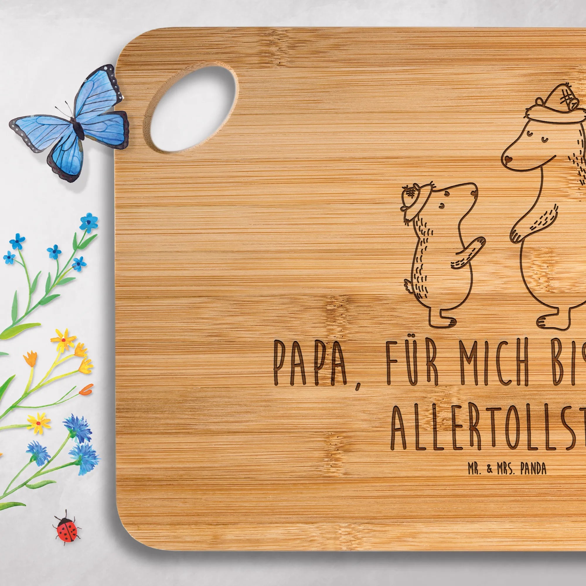 Bamboo chopping board Bears with hats - with saying
