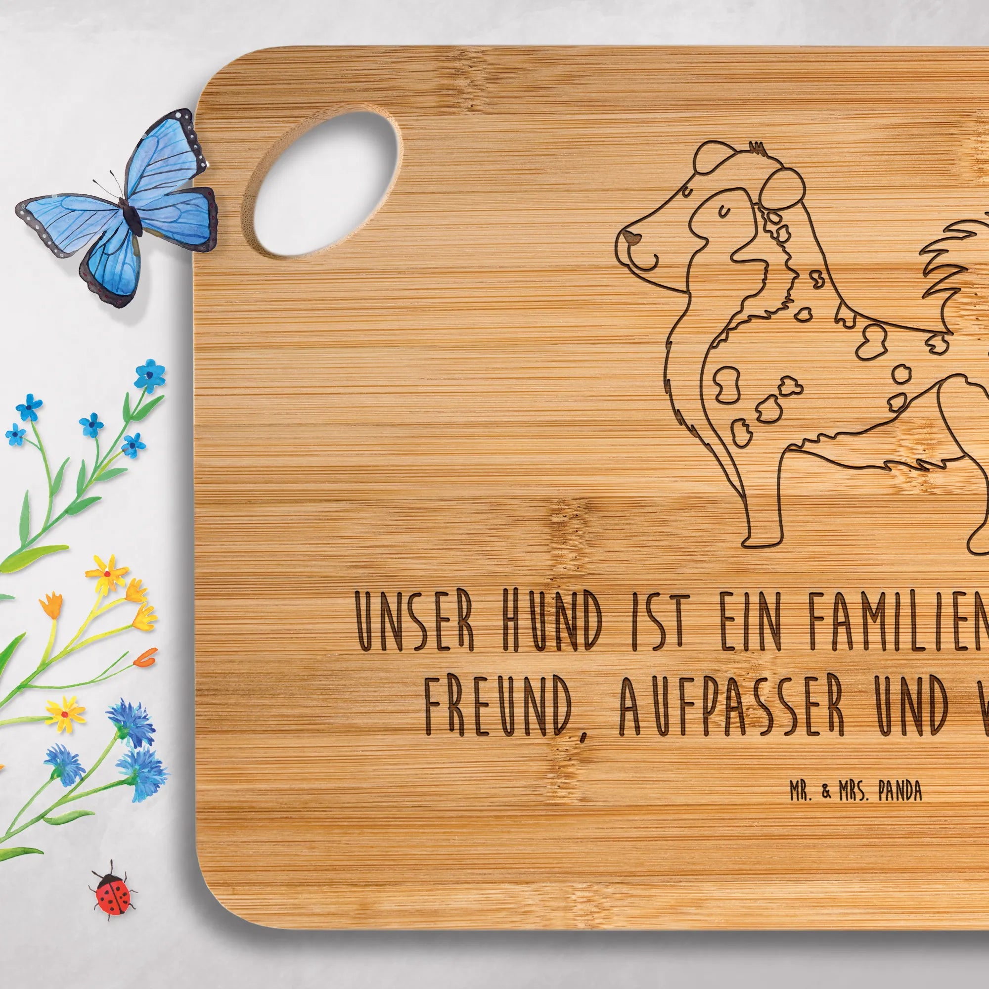 Ein Herz für Hunde in deiner Küche: Unser Mr. & Mrs. Panda Schneidebrett mit Australien Shepherd Motiv ist mehr als nur ein Frühstücksbrett. Es verbindet Funktionalität als Schneidebrett oder Küchenbrett mit einem liebevollen Design, das Hundeliebe sichtbar macht. Der kleine Australian Shepherd mit Blumenranke und der warmherzige Spruch „Unser Hund ist ein Familienmitglied, guter Freund, Aufpasser und Wegbegleiter.“ zaubern beim Frühstück und bei der Brotzeit garantiert ein Lächeln auf dein Gesicht.