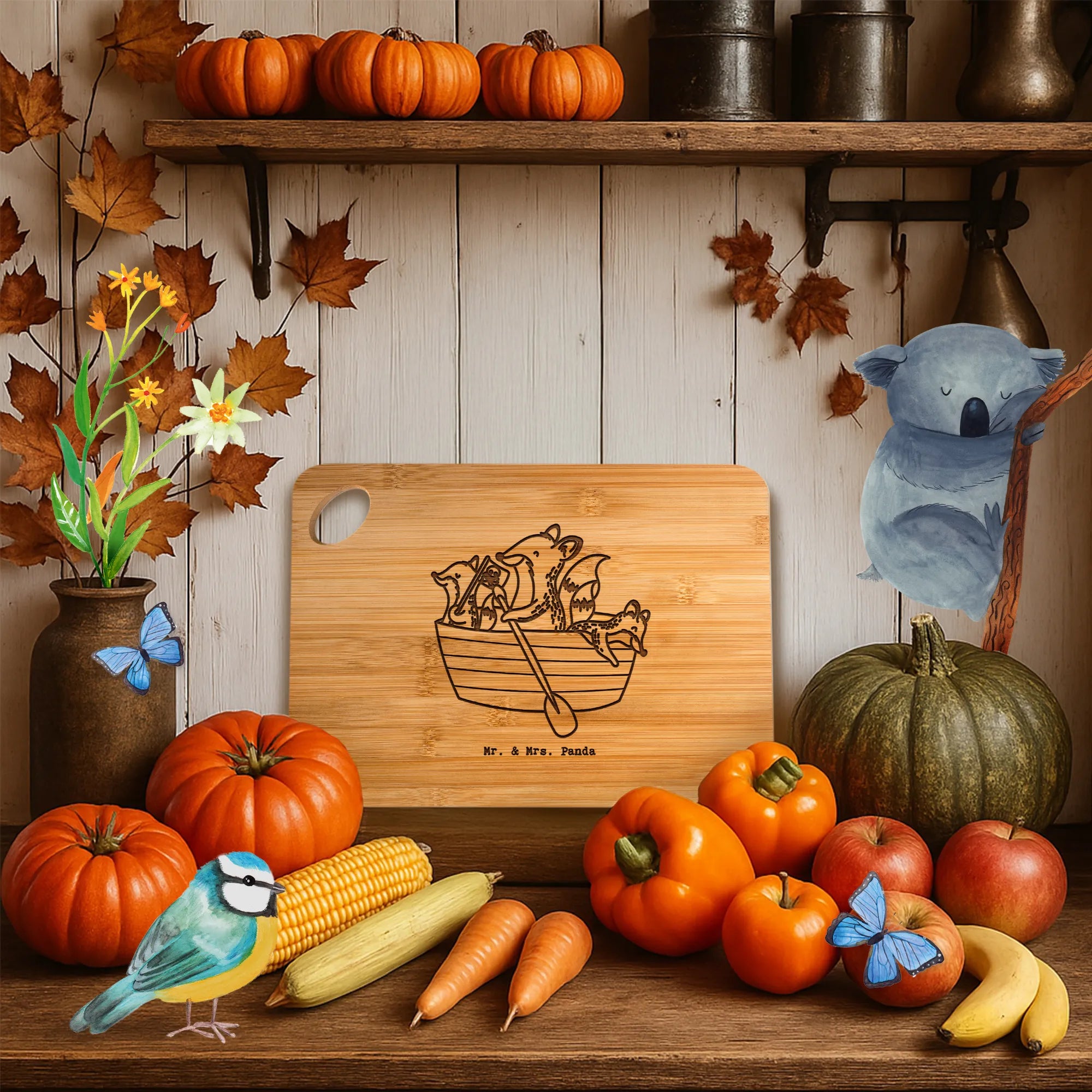 Bamboo chopping board Fox Canoeing – Mr. & Mrs. Panda