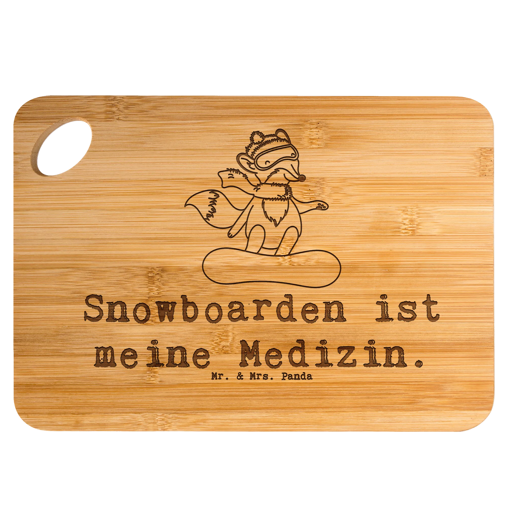 Bamboo chopping board Hare snowboarding - with saying