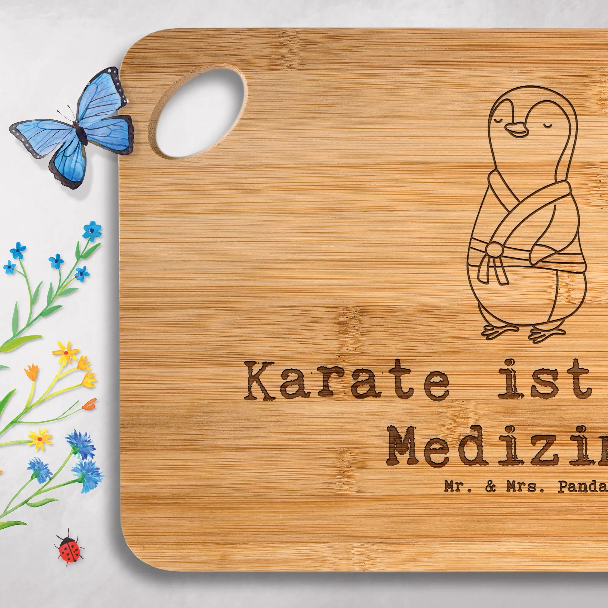 Bamboo chopping board penguin karate - with saying