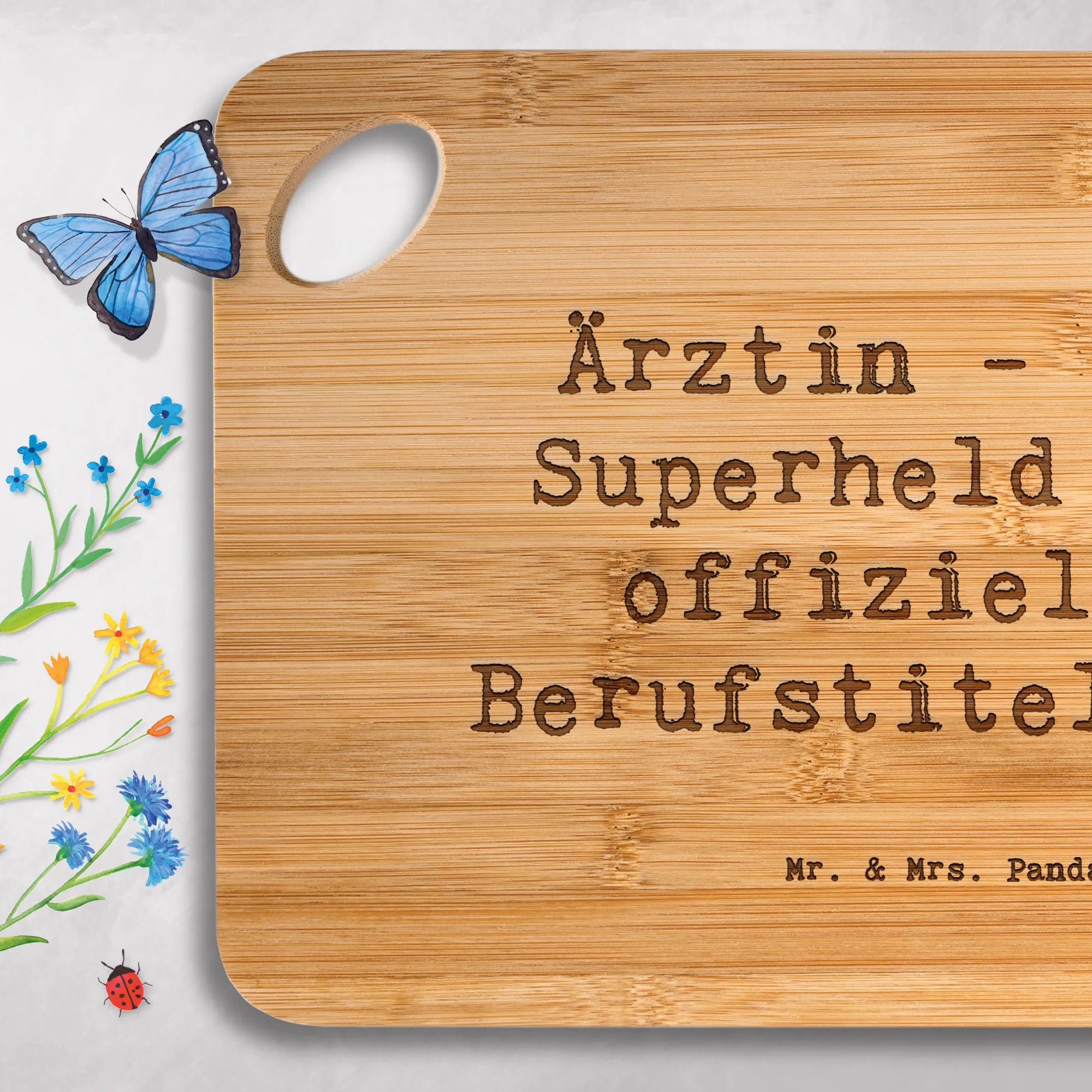 Bamboo chopping board Saying Ärztin - weil Superheld kein offizieller – Mr. & Mrs. Panda