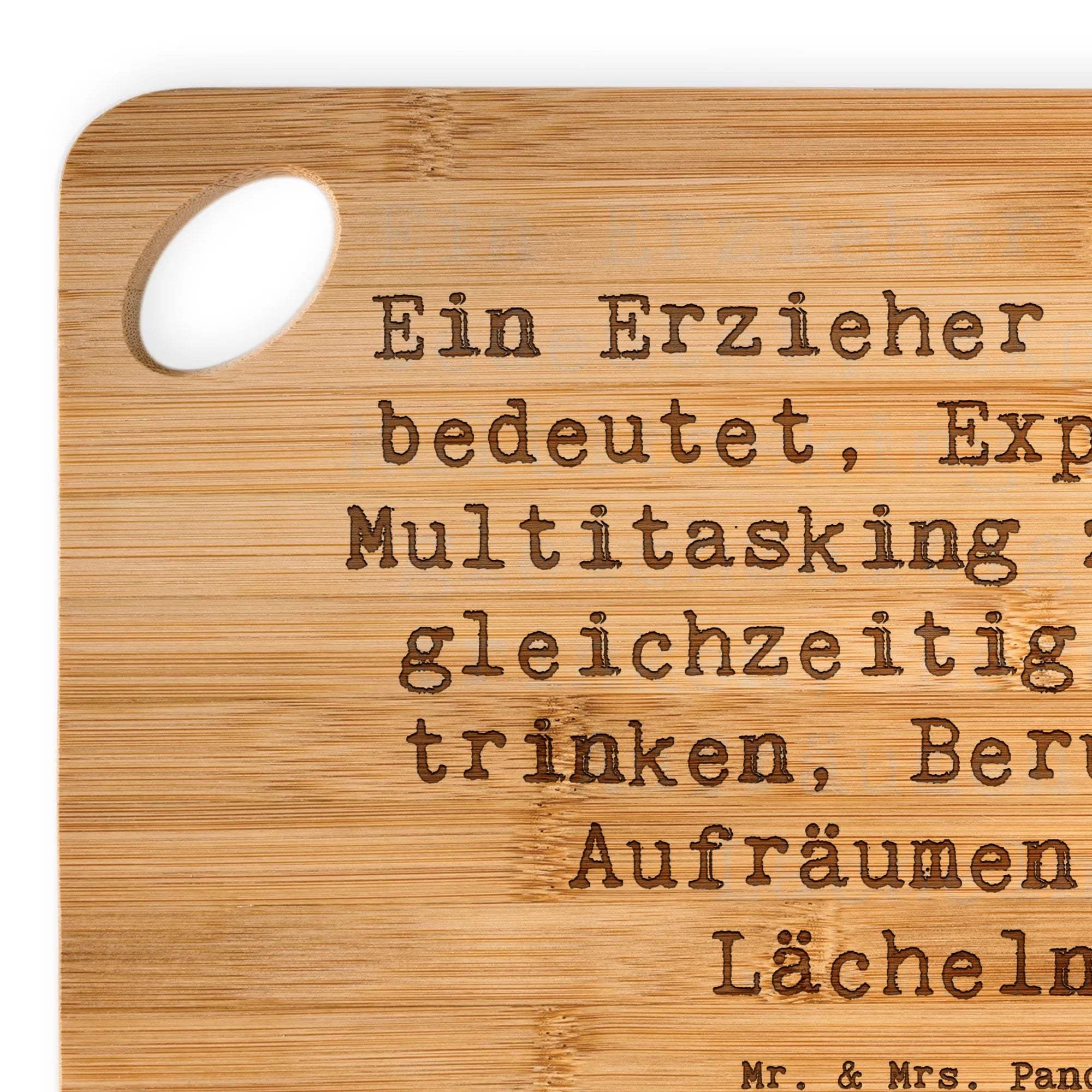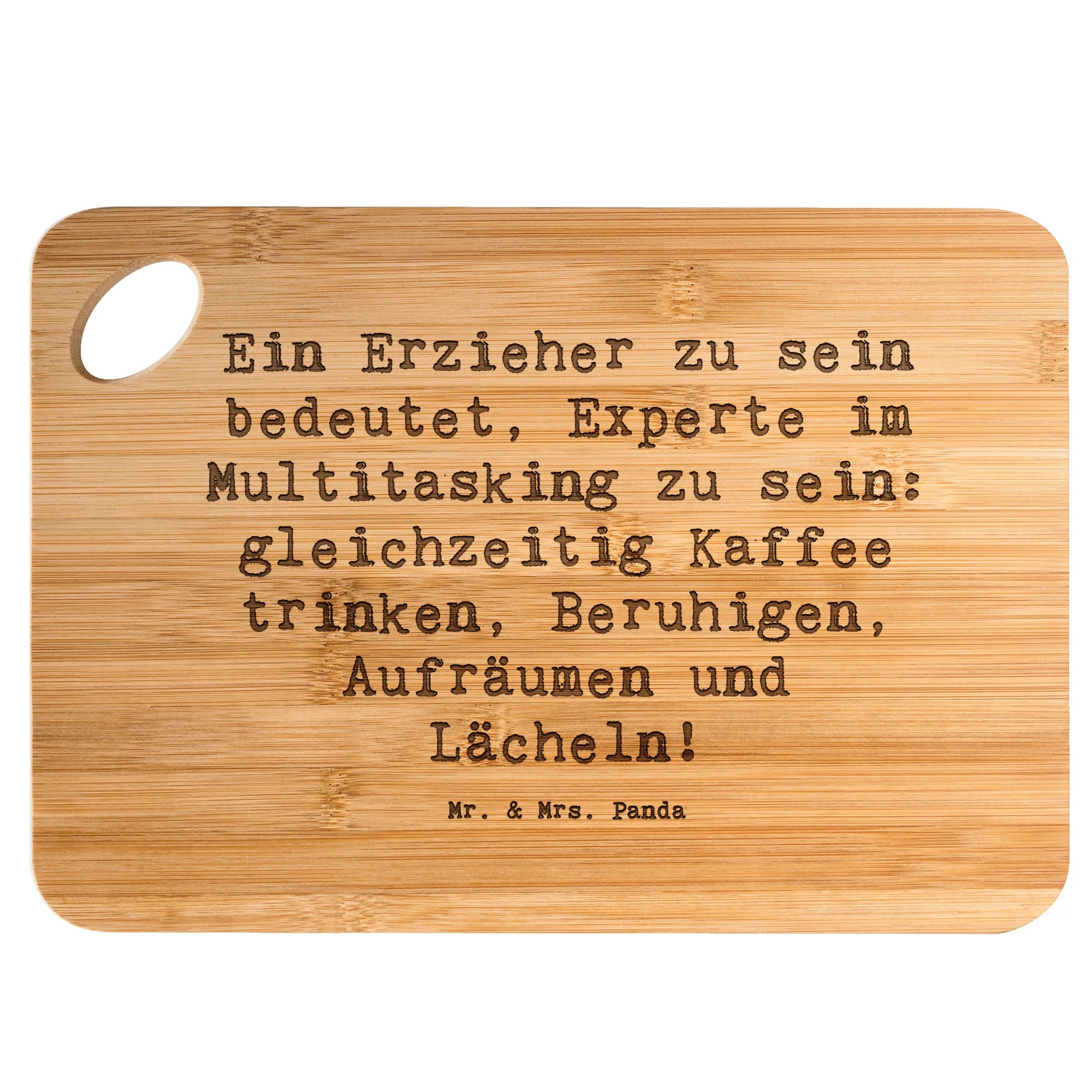 Bamboo chopping board Saying Ein Erzieher zu sein bedeutet, Experte im Multitasking zu sein: gleichzeitig Kaffee trinken, Beruhigen, Aufräumen und Lächeln!
