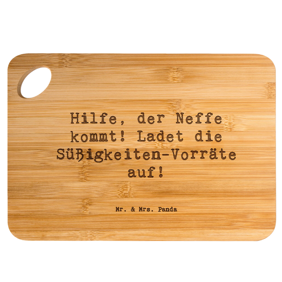 Bamboo chopping board Saying Hilfe, der Neffe kommt! Ladet die Süßigke – Mr. & Mrs. Panda