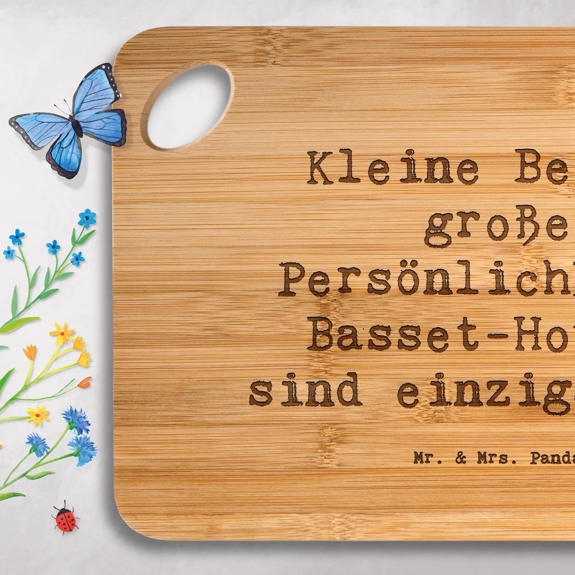 Bamboo chopping board Saying Kleine Beine, große Persönlichkeit: Basse – Mr. & Mrs. Panda