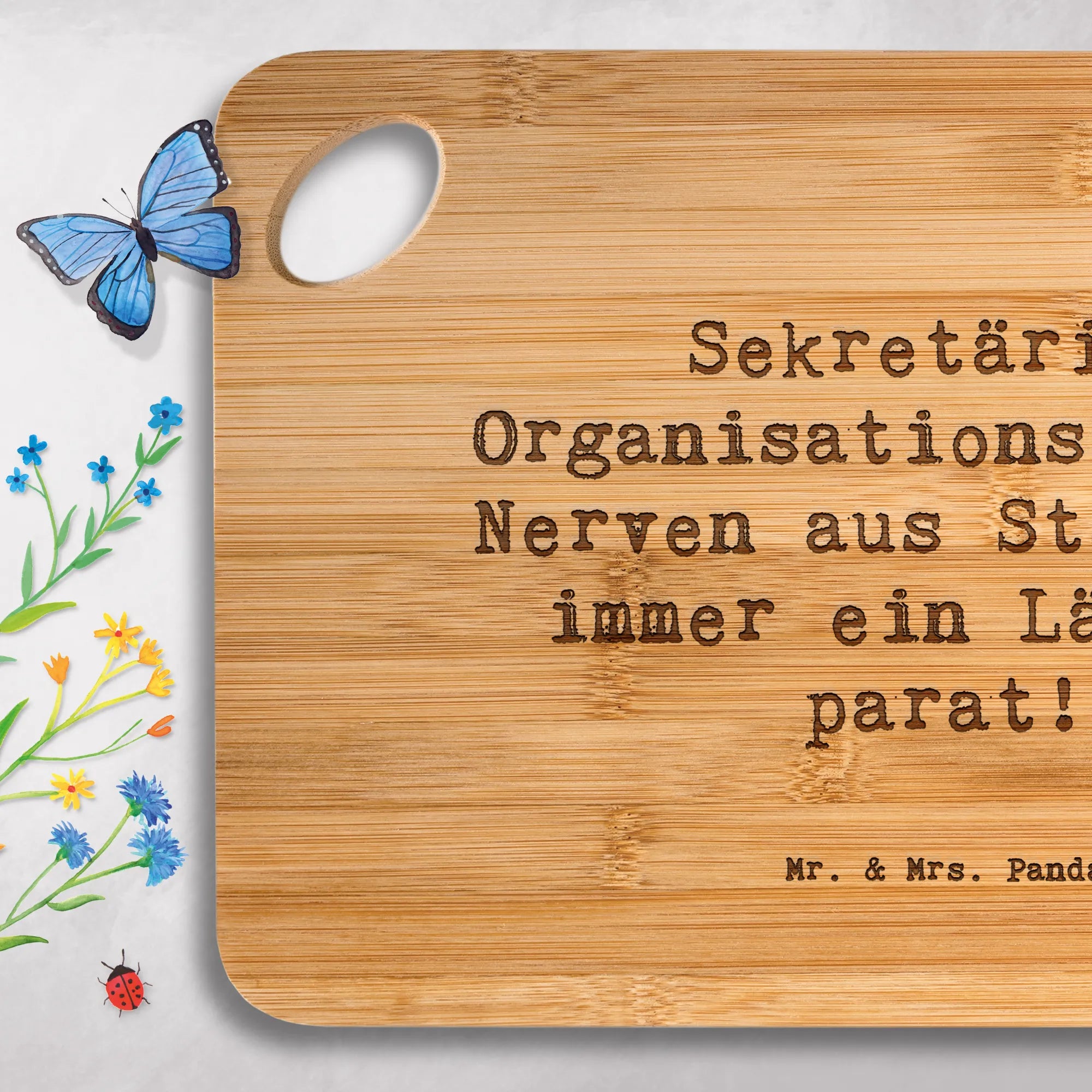Bamboo chopping board Saying Sekretärin: Organisationstalent, Nerven a – Mr. & Mrs. Panda