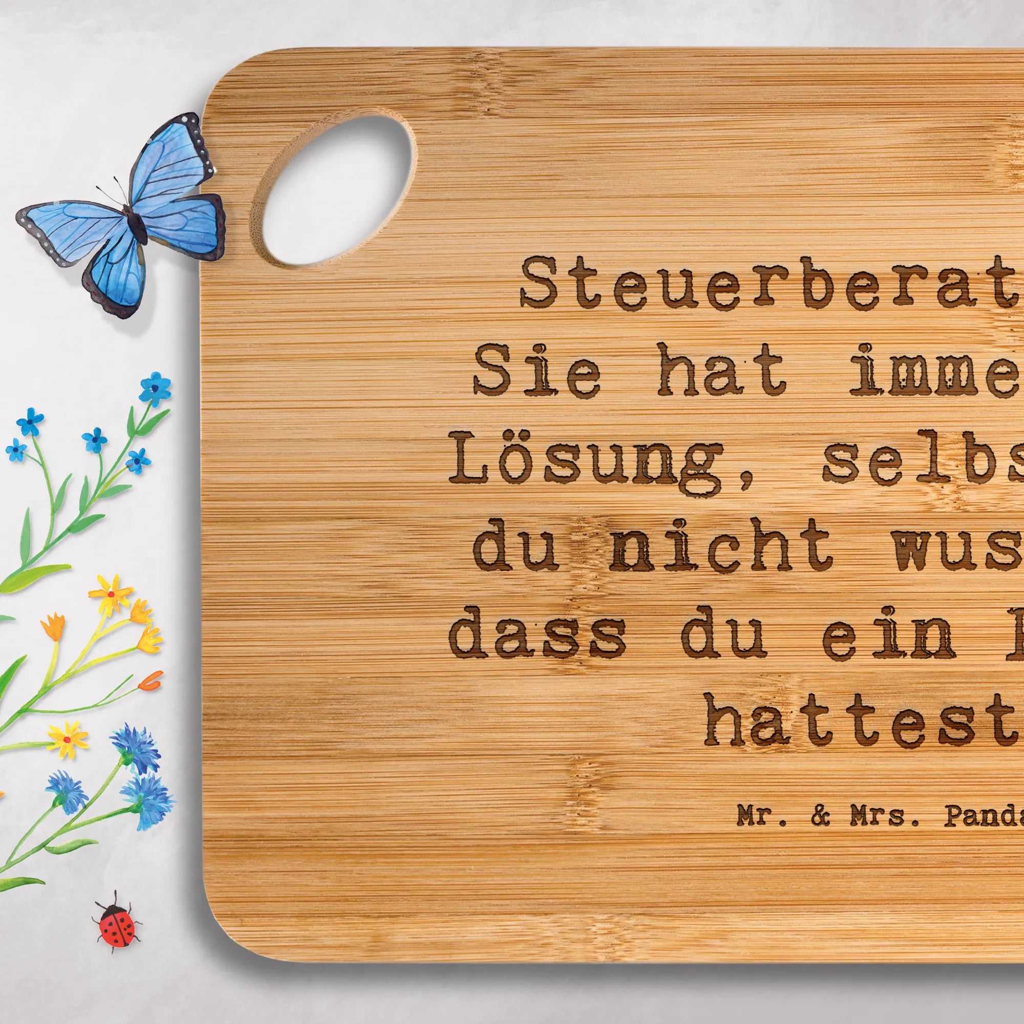 Bamboo chopping board Saying Steuerberaterin: Sie hat immer eine Lösun – Mr. & Mrs. Panda