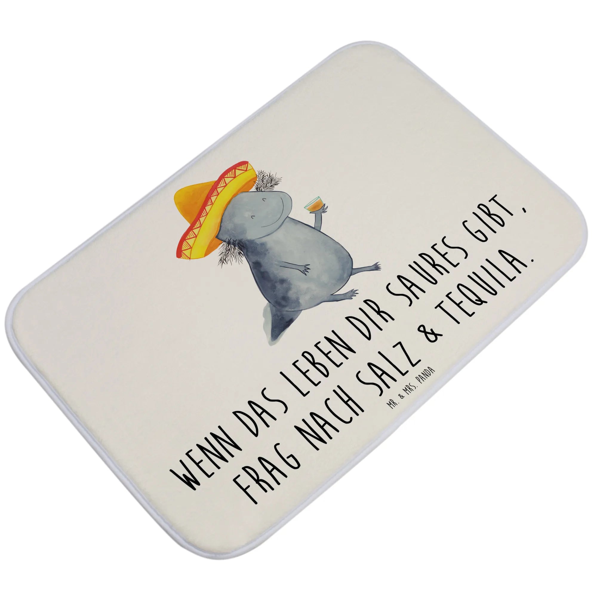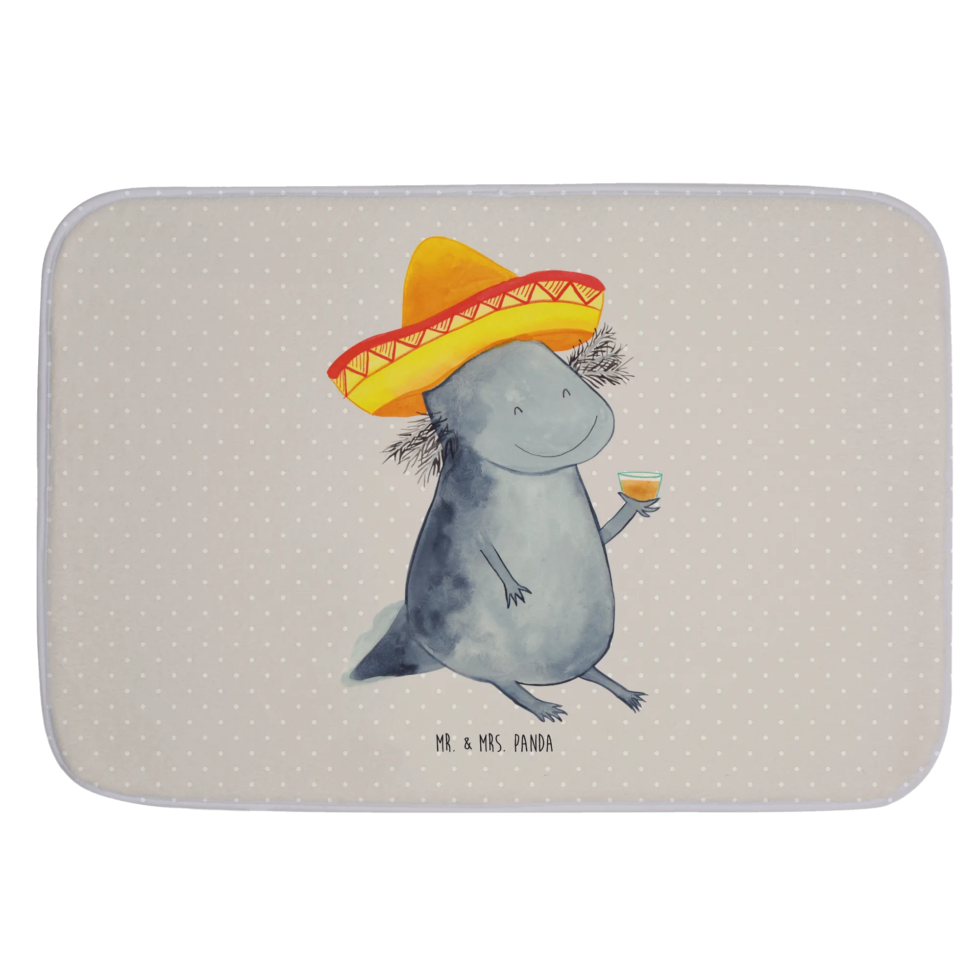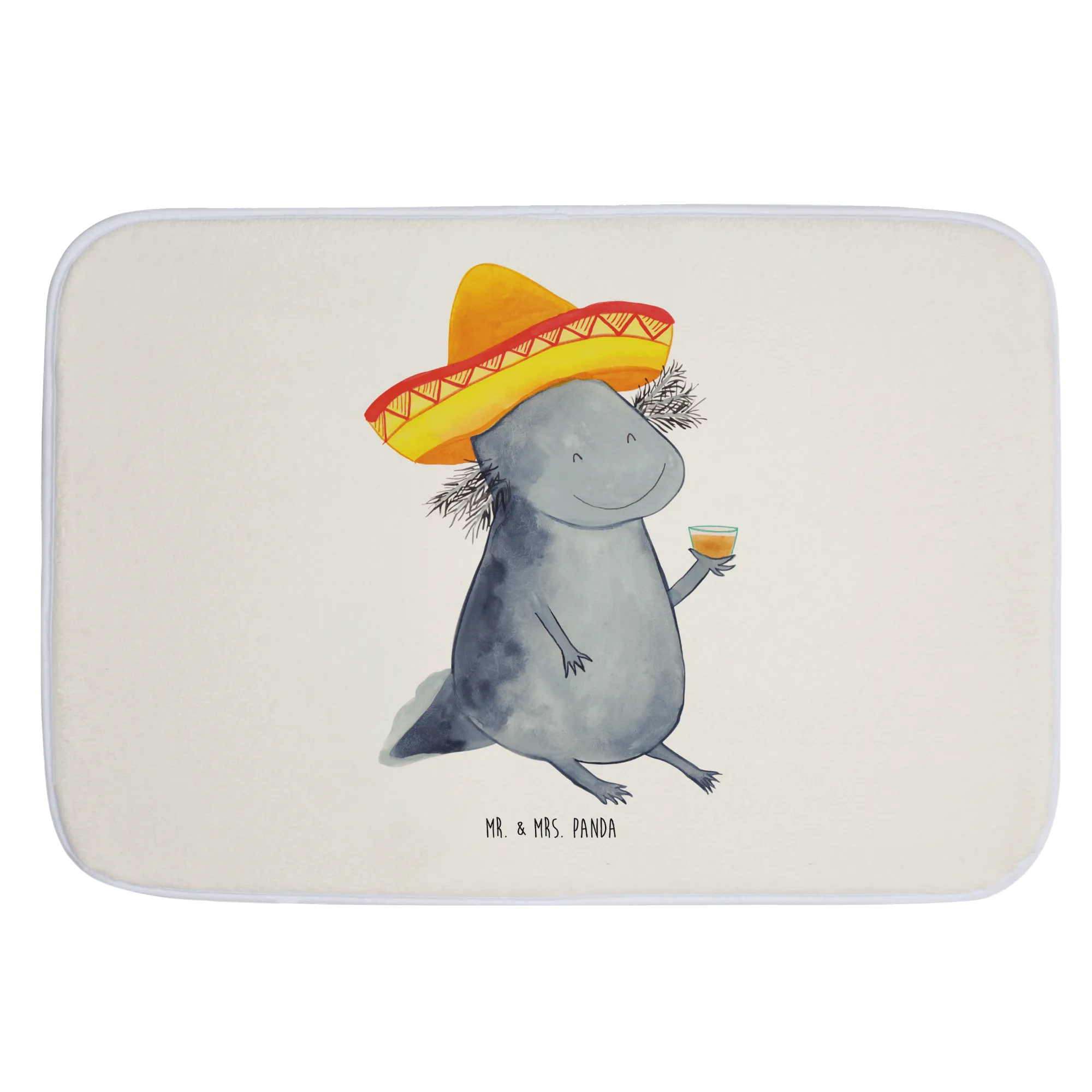 Introducing the delightful Mr. & Mrs. Panda Bath Mat in the enchanting Axolotl Tequila design, a cheerful addition to any bathroom setting! This extraordinary bath mat is not only a visual treat but also incredibly functional. Its charming motif features a lovable axolotl, complete with a sombrero and a cheeky tequila glass, ready to brighten your space and your mood!