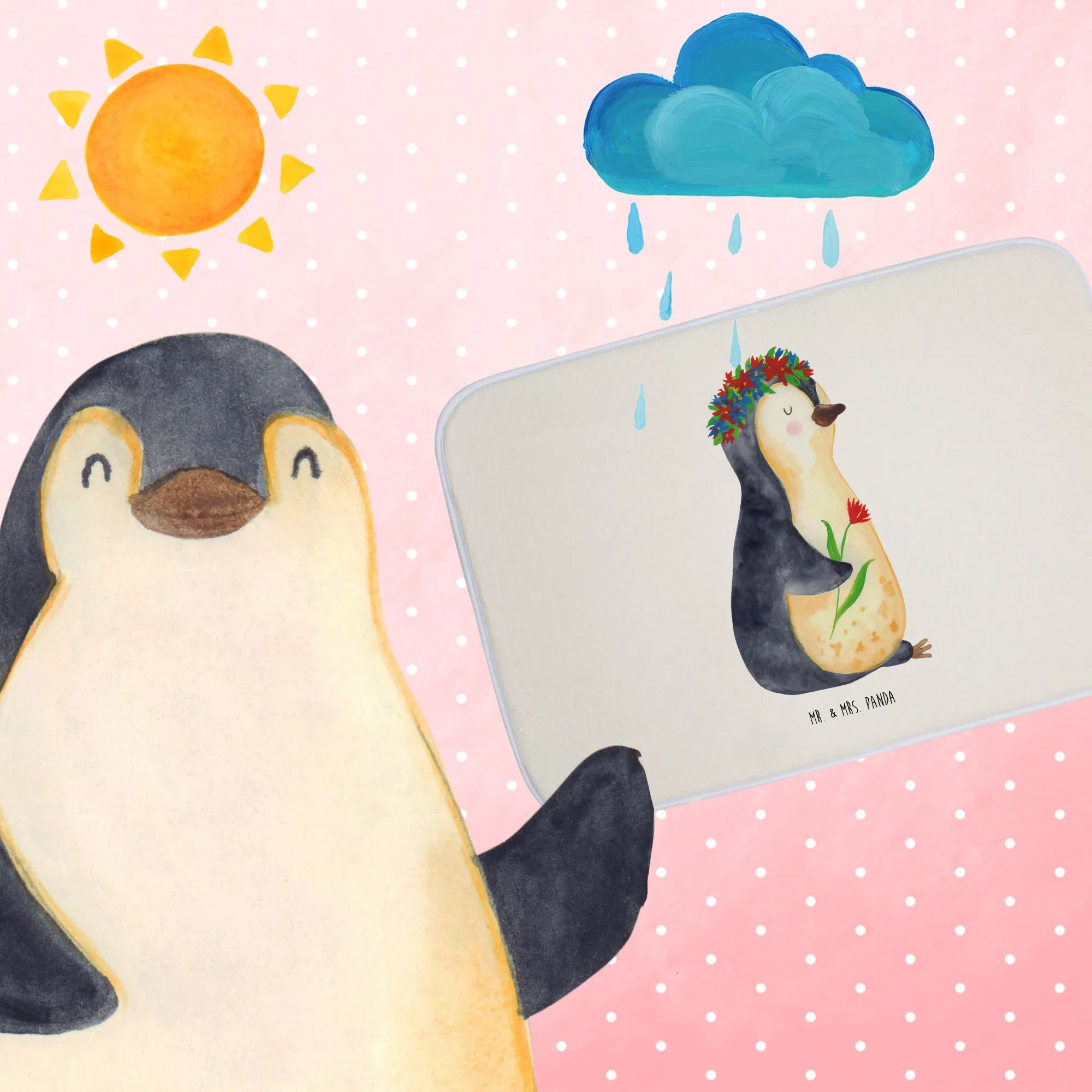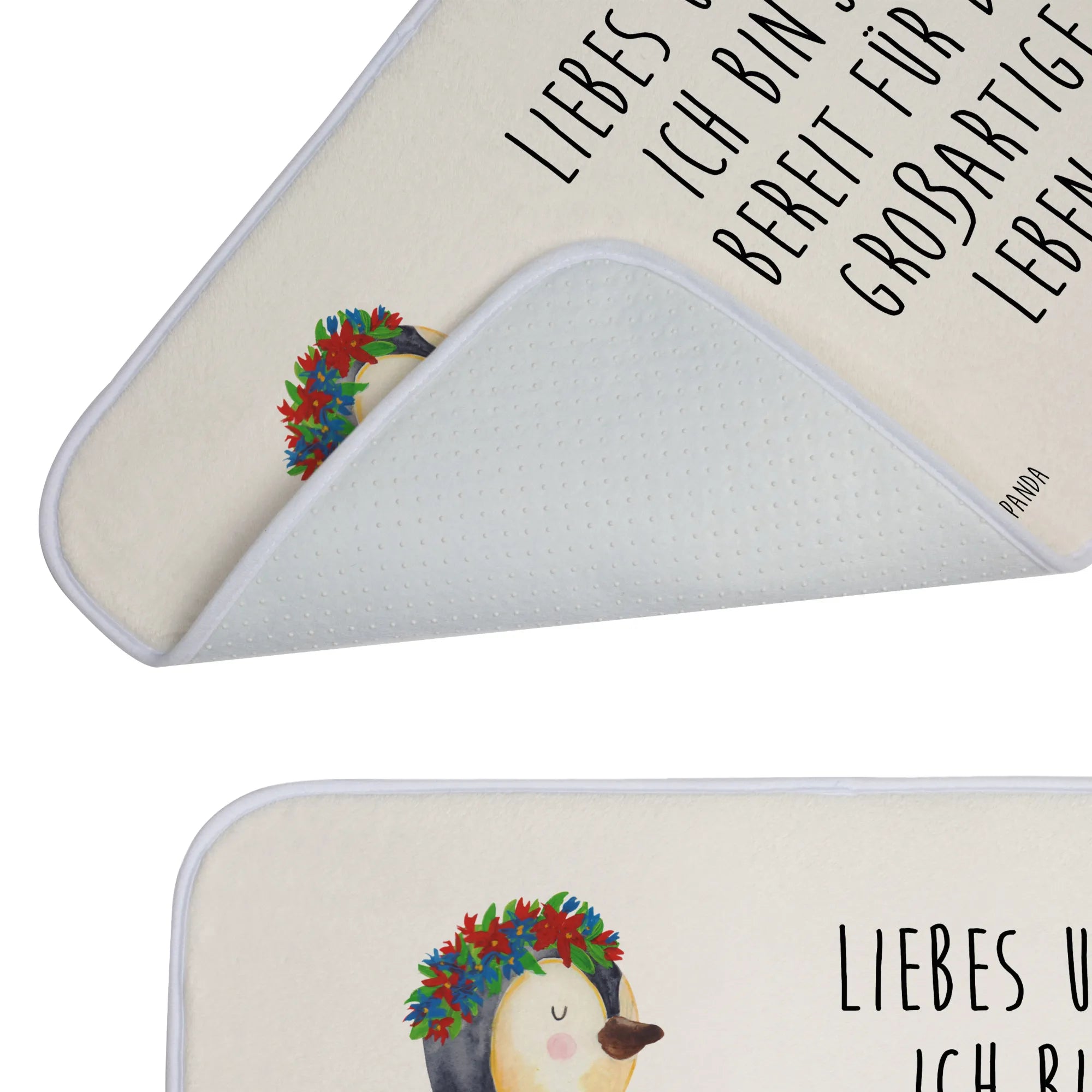 Looking for the perfect gift to brighten someone's bathroom experience? Introducing the delightful Penguin Flowerwreath Bath Mat from the charming Mr. & Mrs. Panda collection! This bath mat is so much more than just a practical addition to your home. Featuring an adorable penguin adorned with a beautiful flower wreath, it effortlessly combines cute aesthetic with essential functionality.