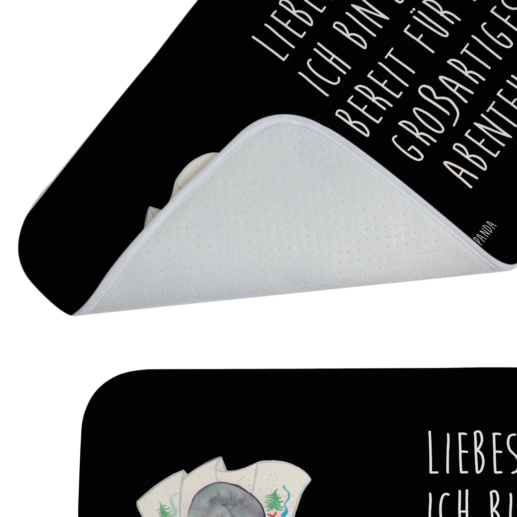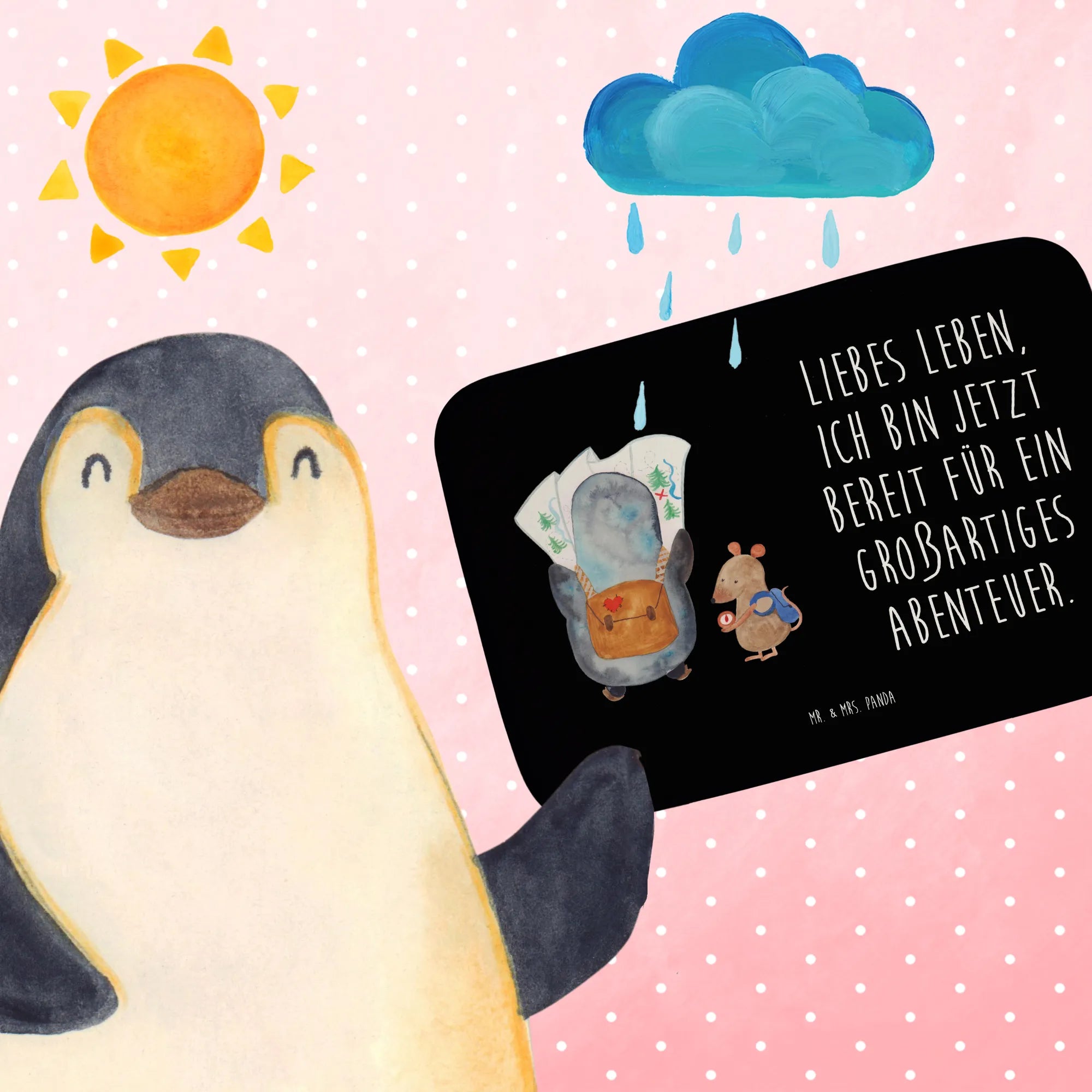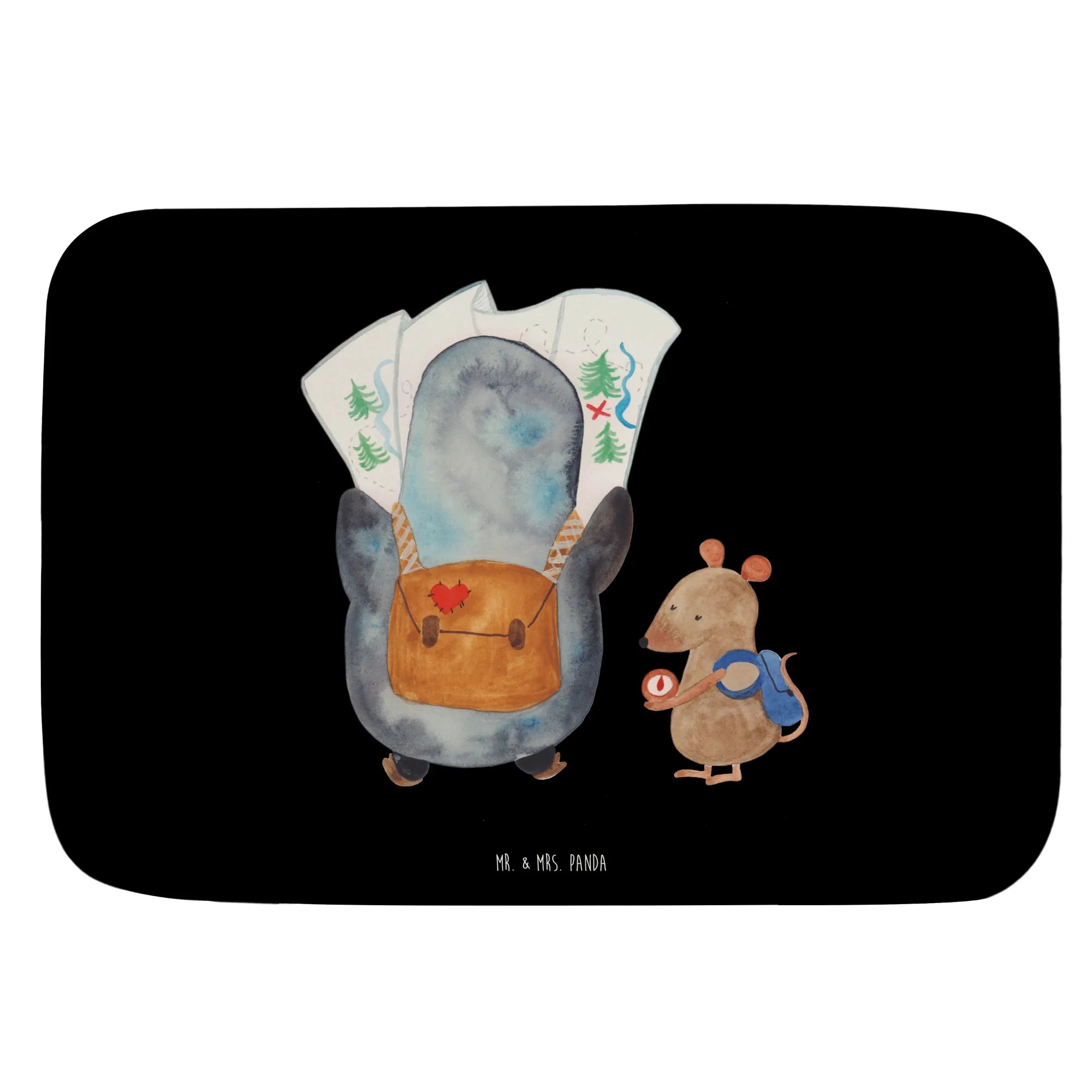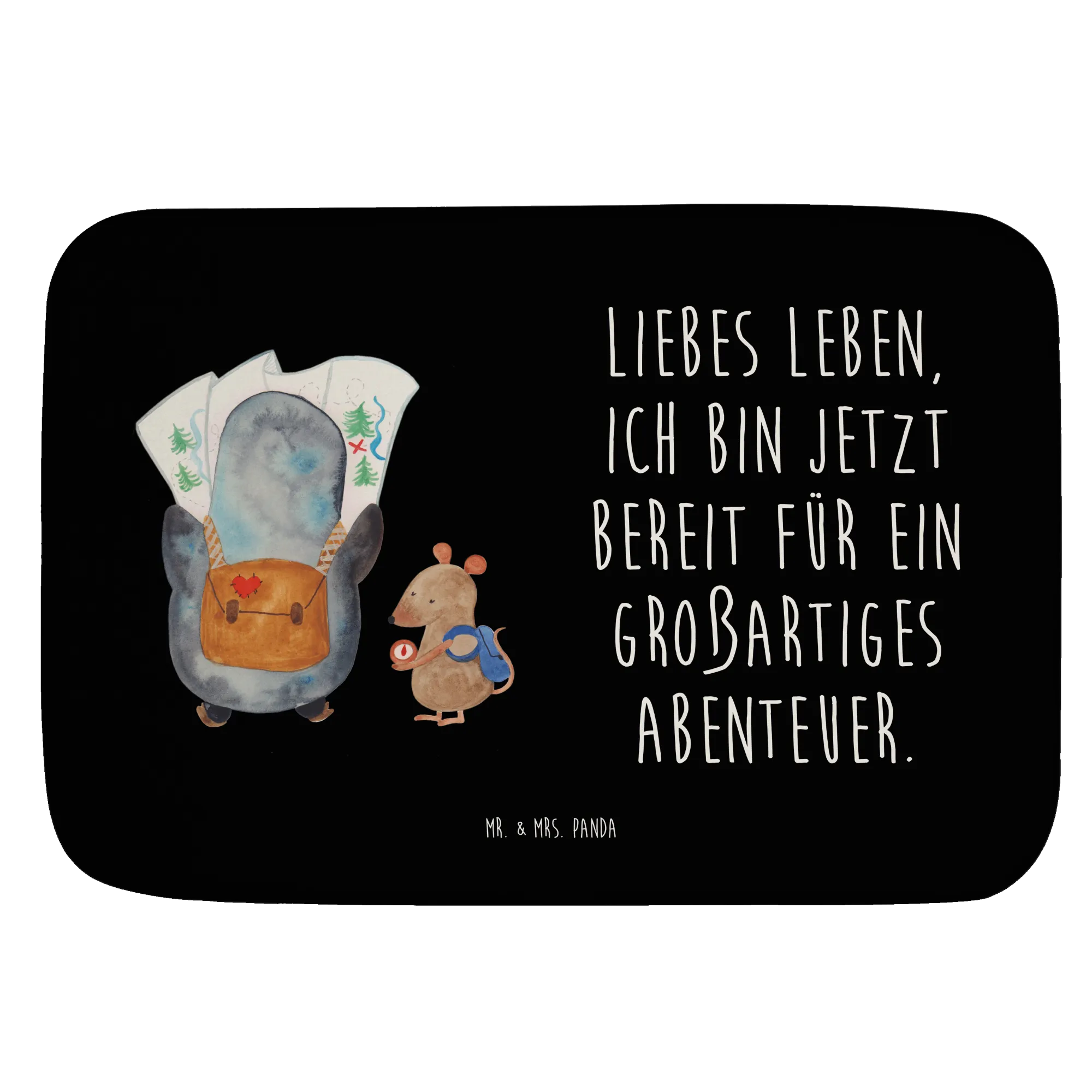 Bath mat Penguin & Mouse Hiker - with saying - Black