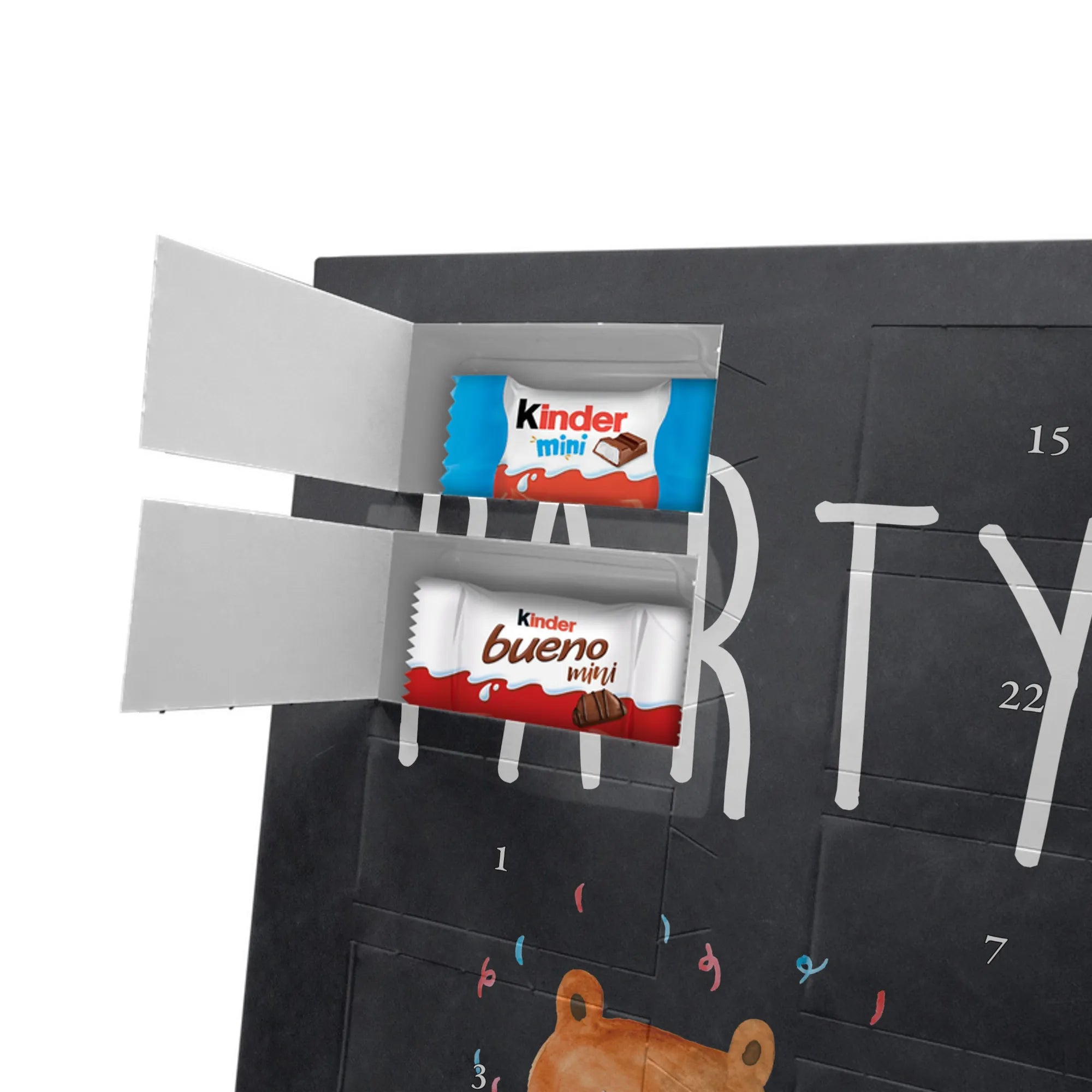 🐼 Bedruckte Seitenflächen, liebevolle Motive und gefüllt mit kinder® Schokolade.