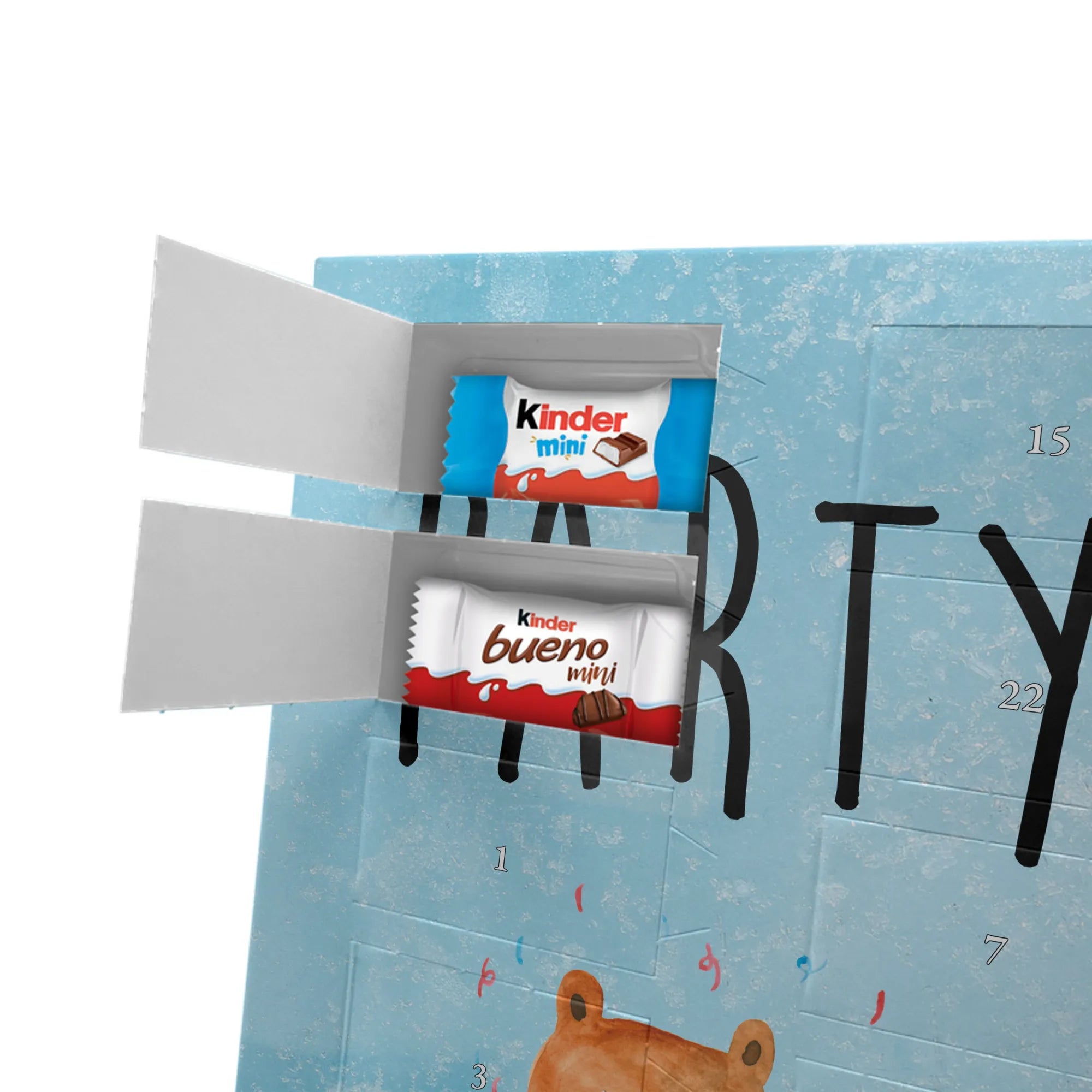 Personalisierter Schoko-Foto-Adventskalender von Mr. & Mrs. Panda – perfekt, wenn du ein einzigartiges, herzhaft-süßes Geschenk suchst. Du lädst ein Foto hoch, das wir auf der Vorderseite platzieren; der Rest des Kalenders ist mit unseren liebevollen Illustrationen und frechen Sprüchen gestaltet. Achte bitte darauf, dass das Bild eine hohe Auflösung hat und der Bildausschnitt passt, damit das Druckbild schön und scharf wird. Lade nur Fotos hoch, an denen du die Rechte besitzt oder für die du die Erlaubnis hast. Wichtig: Wir bearbeiten oder kürzen die Fotos nicht und personalisierte Artikel sind vom Rückgaberecht ausgeschlossen. Die hochwertige, seidenmatte Oberflächenveredelung sorgt für edle Optik, die bedruckten Seitenflächen geben dem Kalender eine liebevolle Note. Maße: 355 mm x 245 mm x 11 mm. Du kannst den Kalender aufstellen oder aufhängen – ganz wie du möchtest. Gefüllt ist er mit kinder® Schokolade: enthalten sind kinder® Schoko-Bons, kinder® Bueno mini und kinder® Schokolade mini. Wir empfehlen, vor dem Hochladen den Bildausschnitt am Bildschirm zu prüfen, damit Gesichter und wichtige Details nicht abgeschnitten werden. Dieser Adventskalender ist ideal für Paare, Familien und als persönliches Mitbringsel – mit ganz viel Mr. & Mrs. Panda Herz.