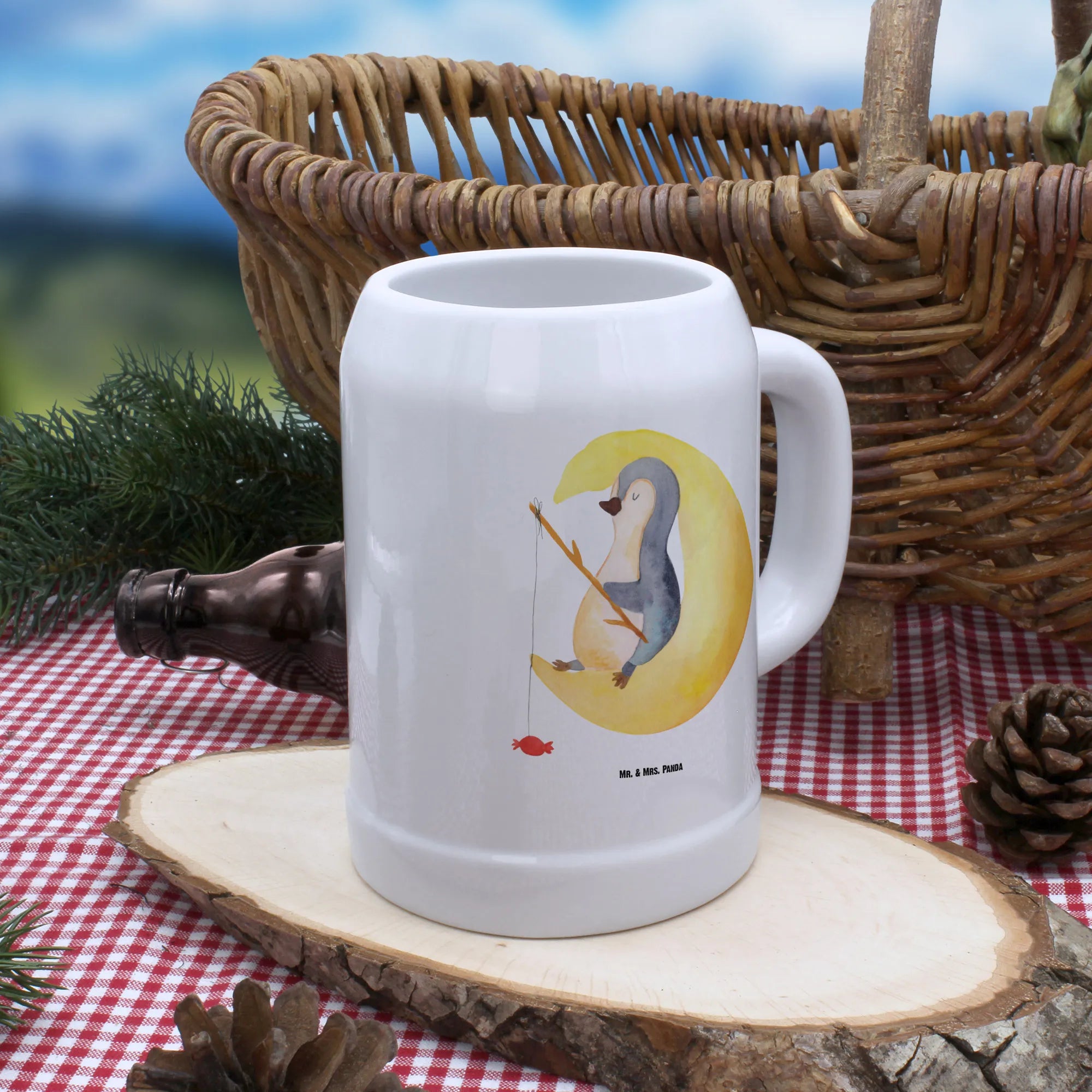 Introducing the delightful Mr. & Mrs. Panda Beer Mug from the Penguin Collection - the perfect gift for penguin lovers and those who can appreciate a good laugh! This charming beer mug, featuring an adorable penguin cozied up on a crescent moon, brings a whimsical touch to your drinking experience. Not only is it designed for your favorite beverages, but it also melts hearts with its playful imagery and sweet sentiments.