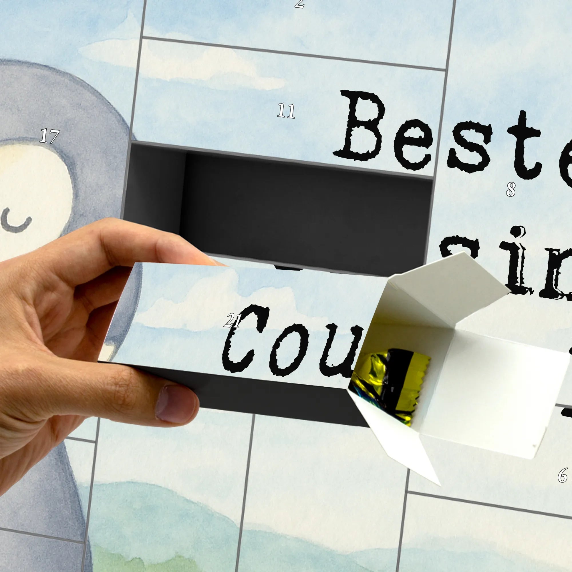 Verschenke Vorfreude, Nähe und kleine Glücksmomente – mit dem Befüllbaren Adventskalender Pinguin „Beste Cousine der Welt“ von Mr. & Mrs. Panda machst Du Deiner Cousine eine unvergessliche Freude.