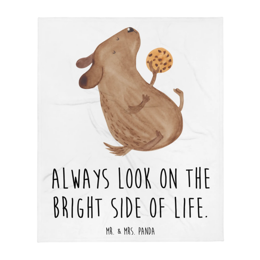 Unsere kuschelige Decke aus der Hunde Kollektion von Mr. & Mrs. Panda bringt Wärme und gute Laune in Dein Zuhause. Das niedliche Motiv zeigt einen kleinen Hund, der genüsslich an einem Keks knabbert, ergänzt von dem lebensbejahenden Spruch „Always look on the bright side of life.“ – eine fröhliche Erinnerung, die jedem Sofaabend eine positive Note verleiht.