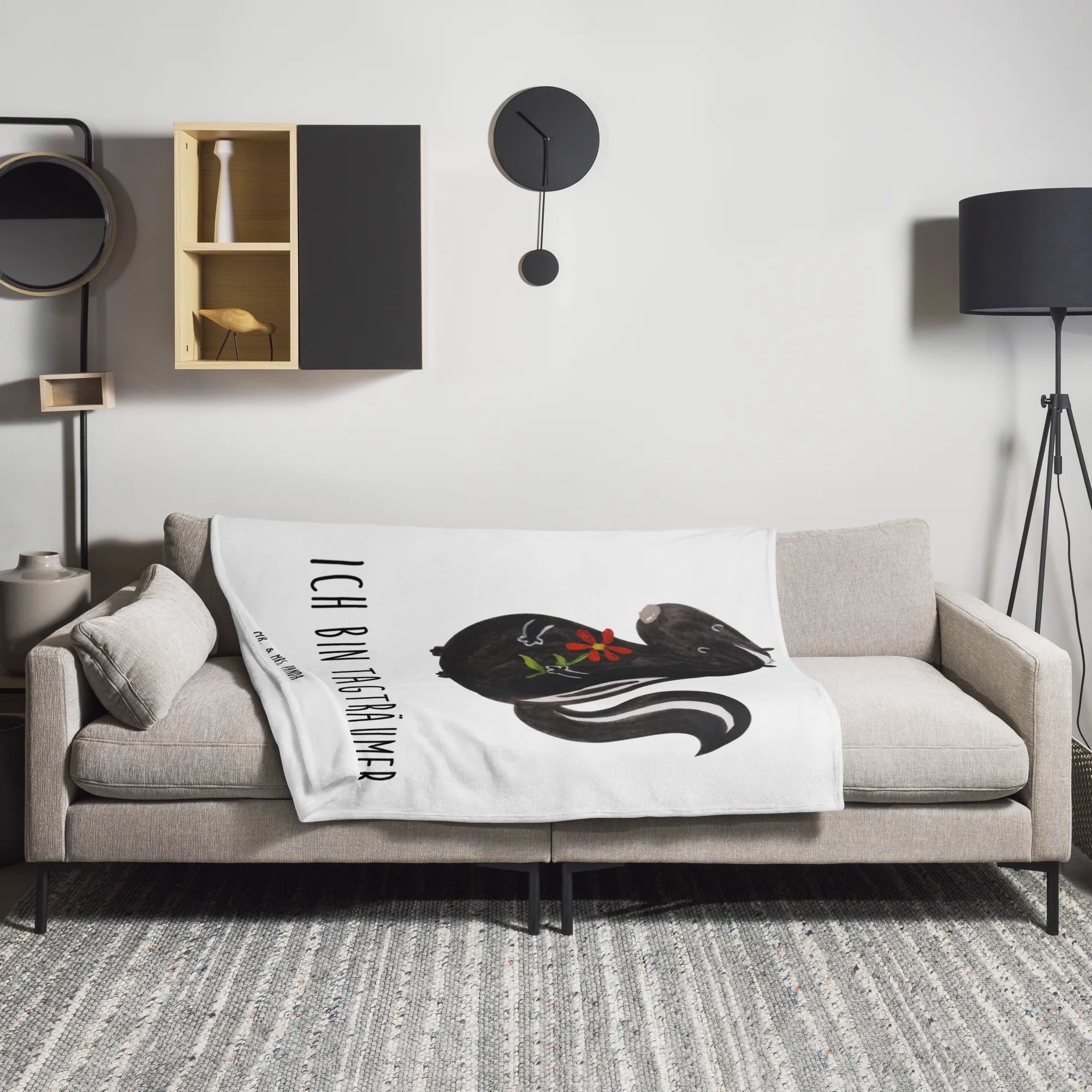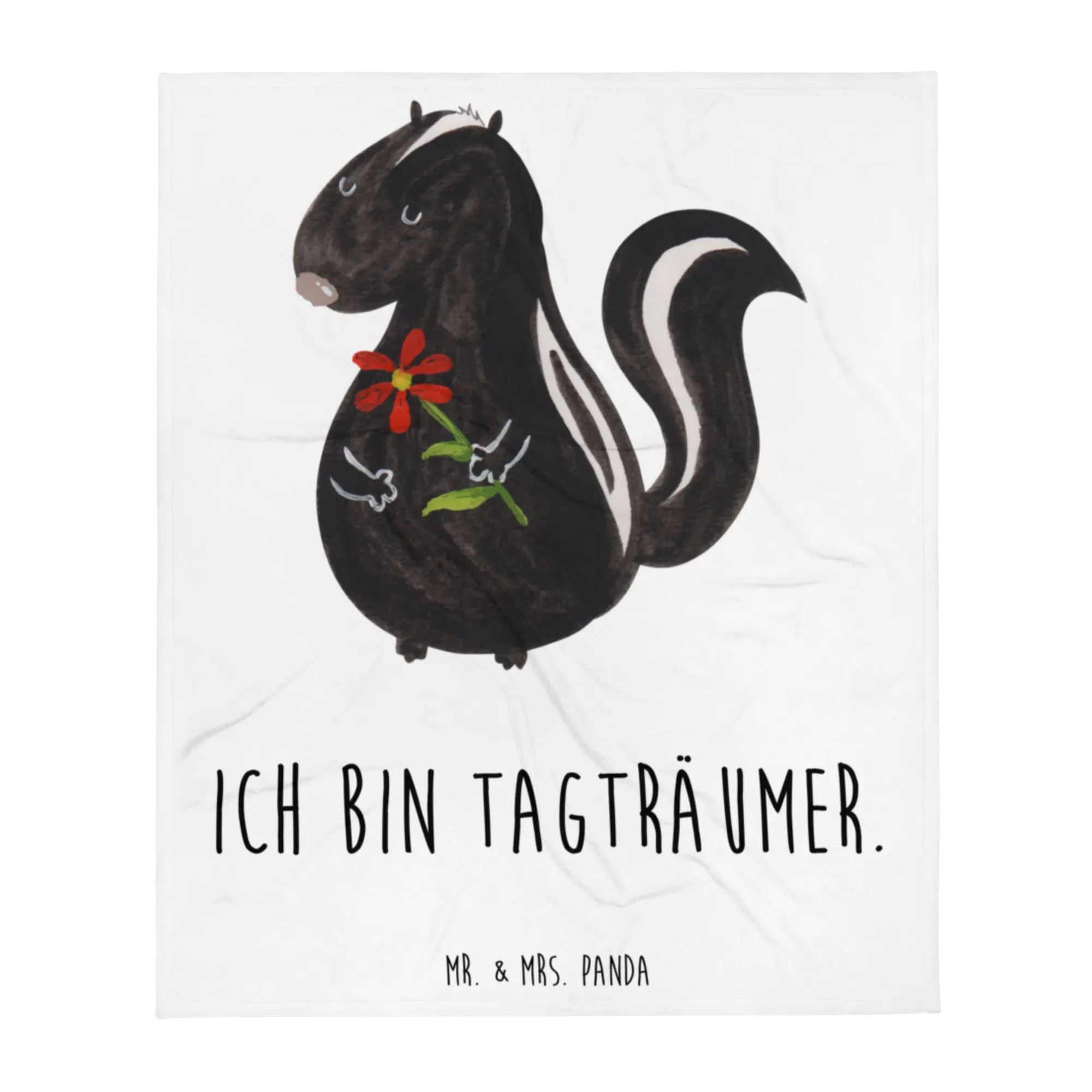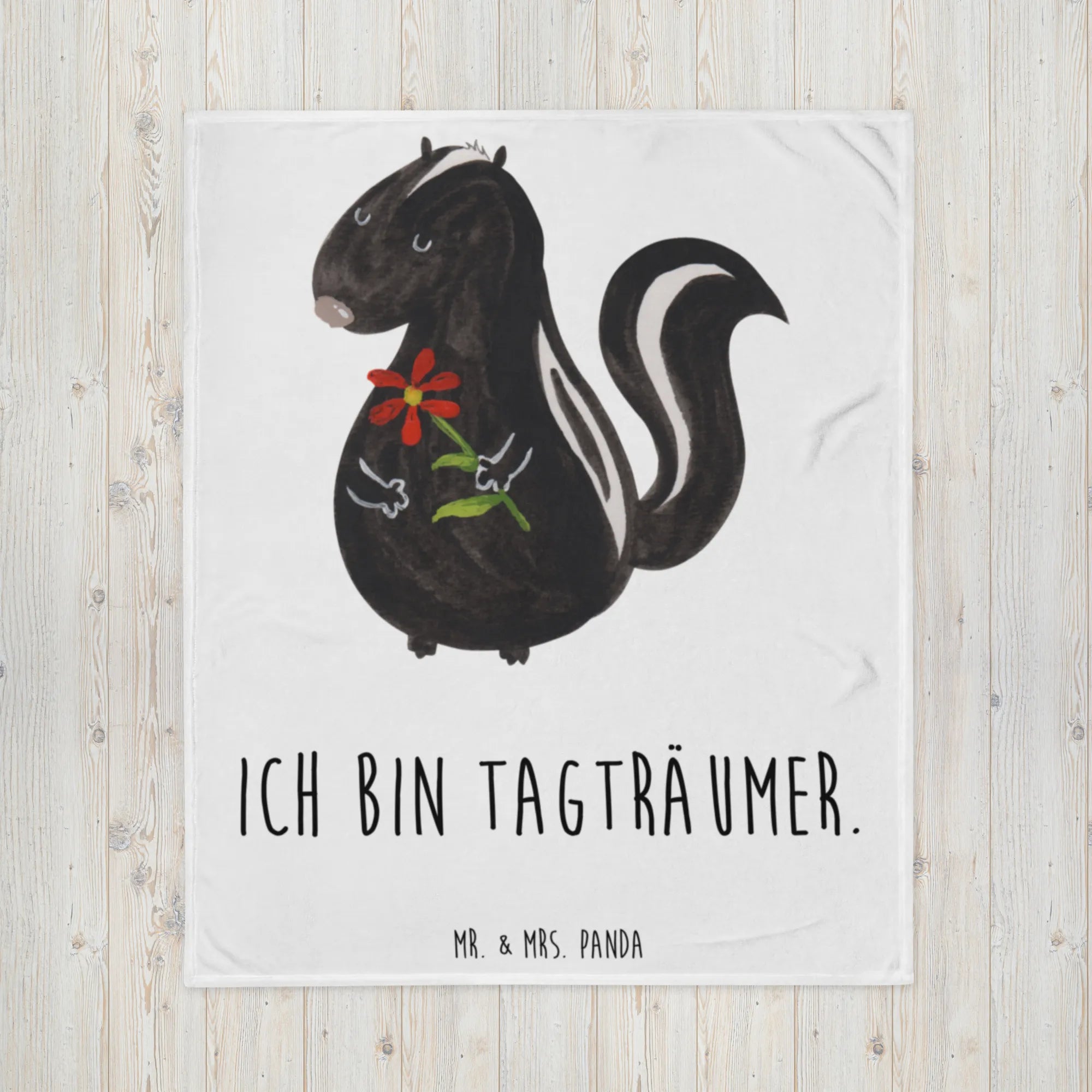 Hole dir ein Stück Gemütlichkeit nach Hause und gönn dir entspannte Stunden mit unserer Stinktier Blume Kuscheldecke – perfekt für alle Tagträumer, Tierfreunde und Designliebhaber.