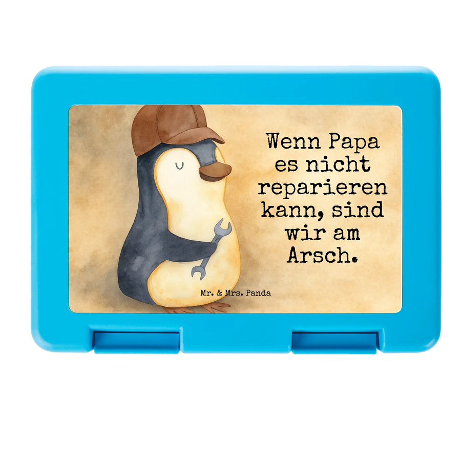 Diese süße Brotdose aus der Familien-Kollektion verbindet Humor mit Alltagstauglichkeit. Auf dem Deckel steht ein liebenswerter Pinguin mit Schraubenschlüssel – und dazu der freche Spruch, der Papas Herz (und auch das der ganzen Familie) im Sturm erobert. Ein ideales Geschenk Papa zum Vatertag, Geburtstag oder einfach so.