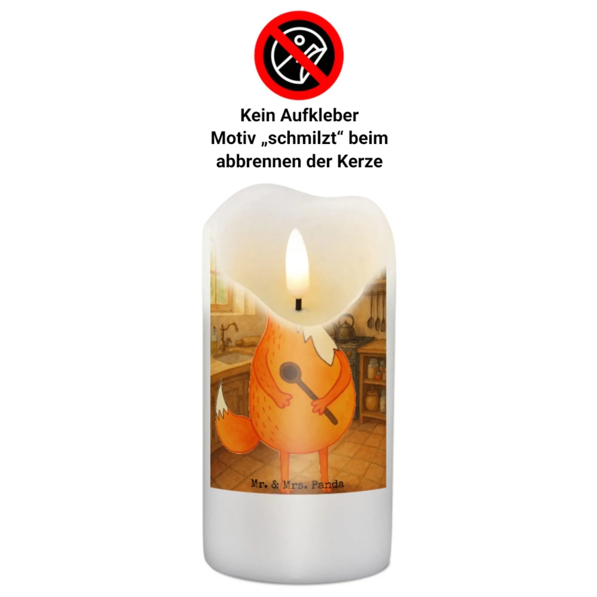 Candle Fox A cook Design - 19 x 8 cm - with saying