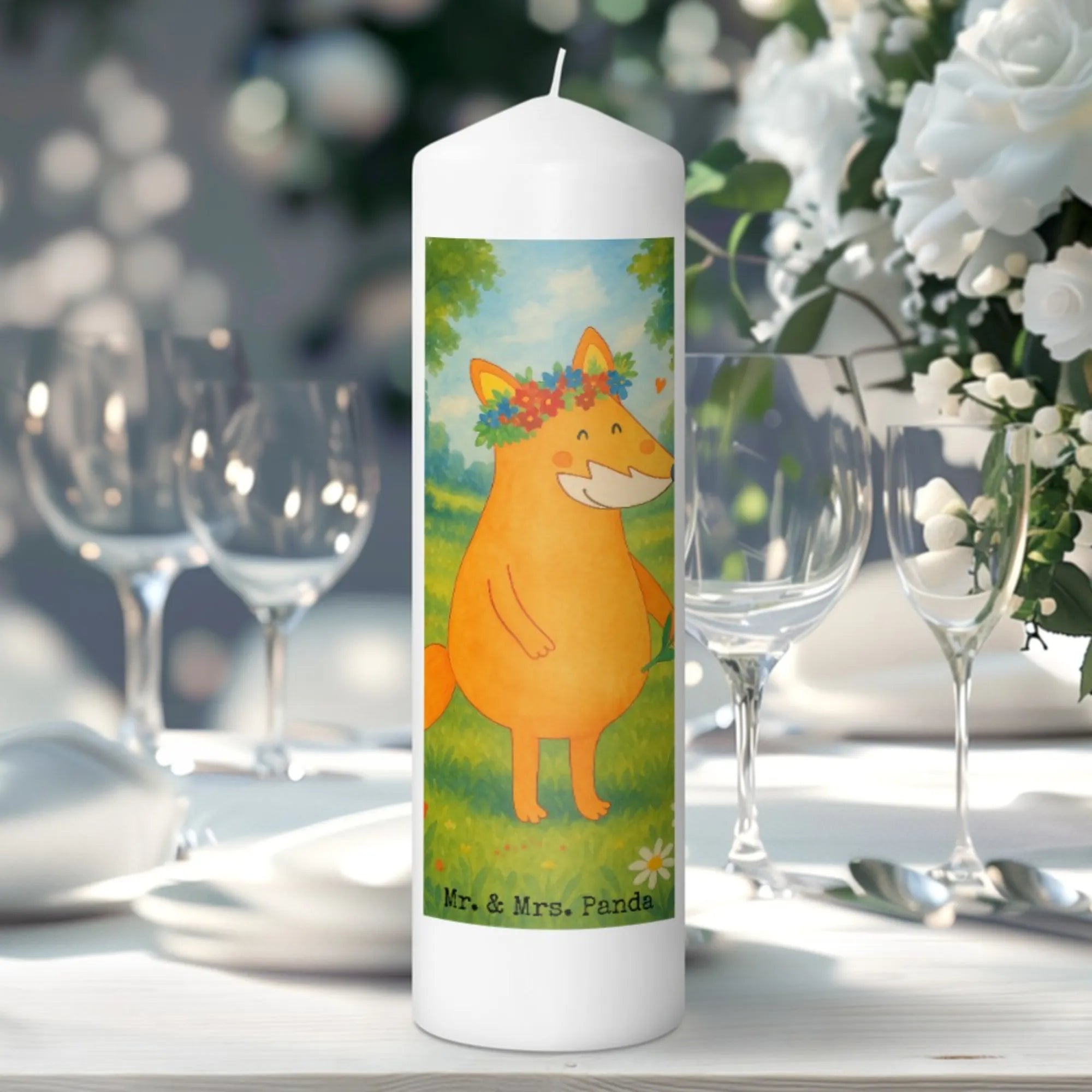 Candle Fox Flower Design - 19 x 8 cm - with saying