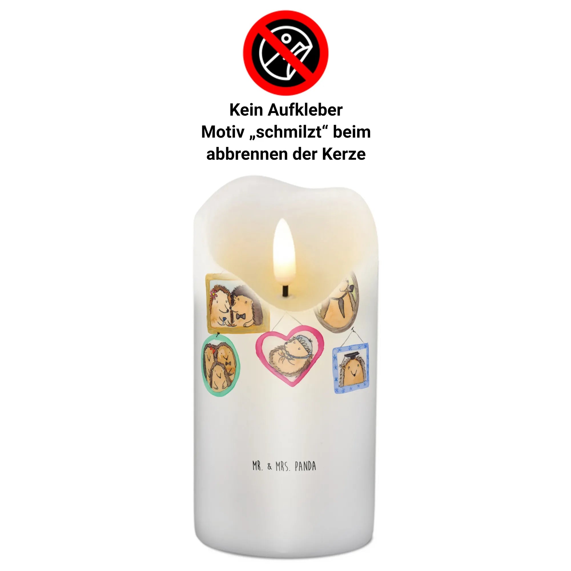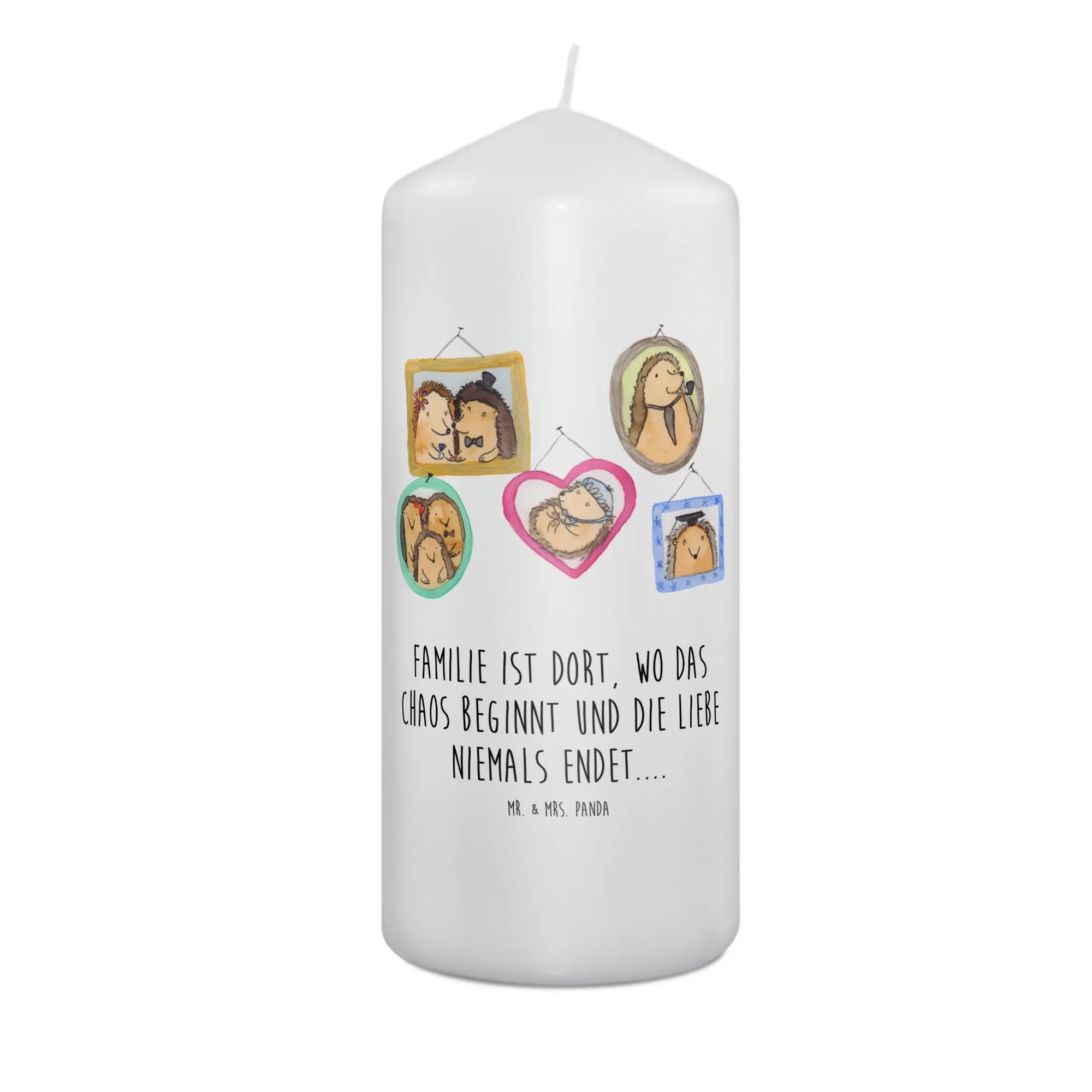 Candle Hedgehog family - 19 x 8 cm - with a saying