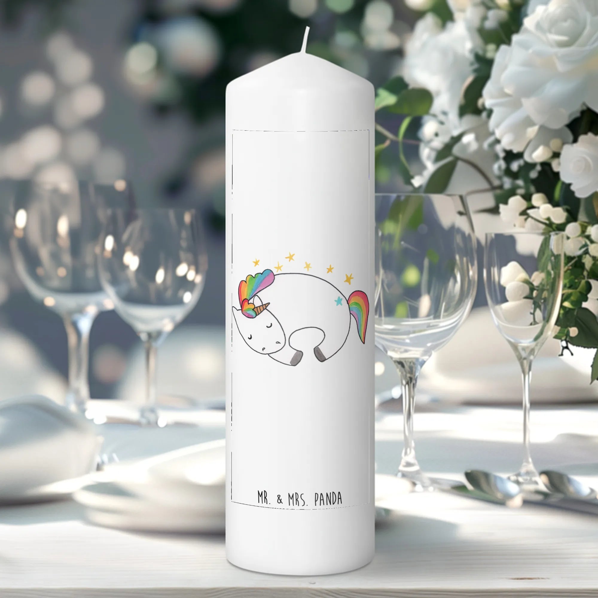 The Mr. & Mrs. Panda Unicorn collection is a carefully curated selection of adorable unicorn-themed products designed with love in Hanover, Germany. Each motif is hand-drawn by Mrs. Panda, ensuring that every piece is a one-of-a-kind artwork. The attention to detail and colorful experiences add to the charm of this candle, making it a delightful object of affection.