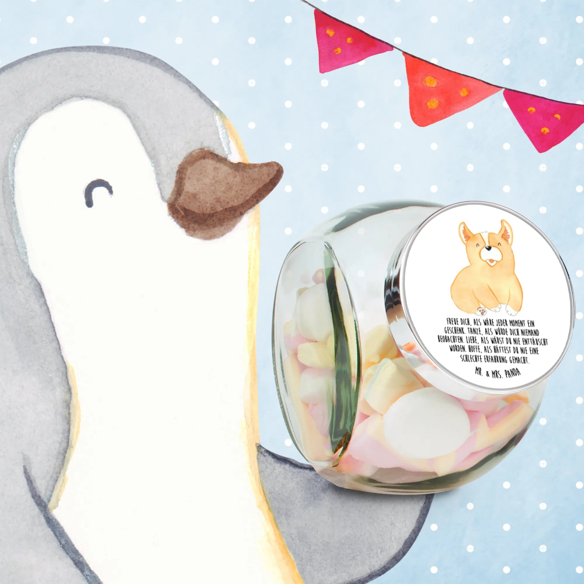 Each jar is crafted from high-quality glass and comes with a secure silver screw cap that ensures your treats stay fresh and aromatic. The whimsical Corgi motif is beautifully printed with high color brilliance thanks to the glass-clear, doming coating, giving it a premium look and feel. This jar is not only practical but also a work of art that dog lovers will adore.