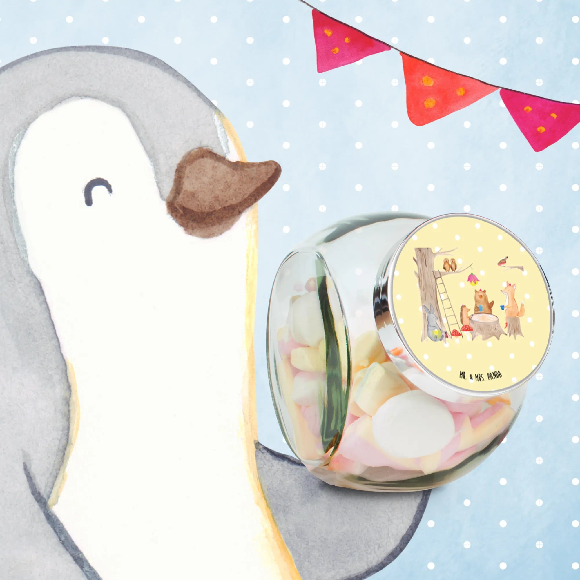 Candy Jar forest animals picnic - XL 2000ml - with saying - Yellow Pastel