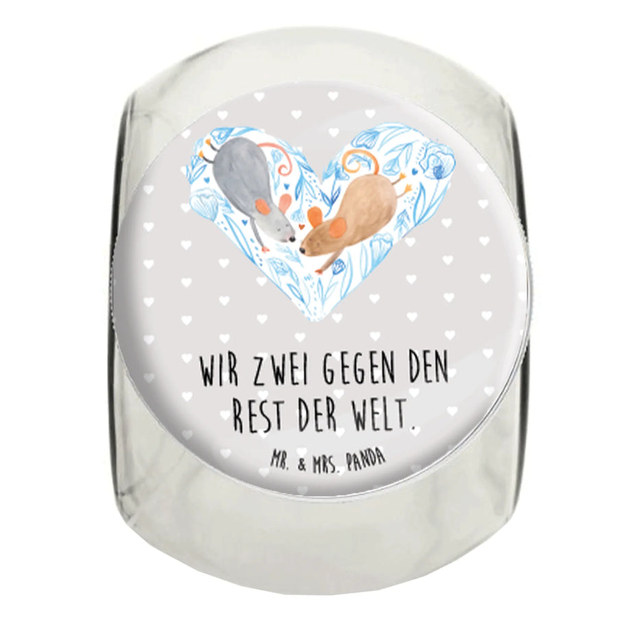 Candy Jar Mice heart - XL 2000ml - with saying - Pastel Gray